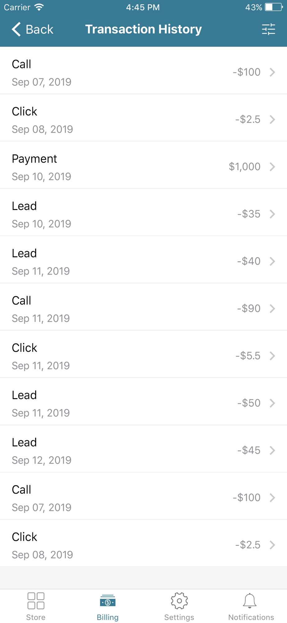* Top up your account's balance to keep receiving leads, call, and clicks easily from our application, and keep track of your transaction history.