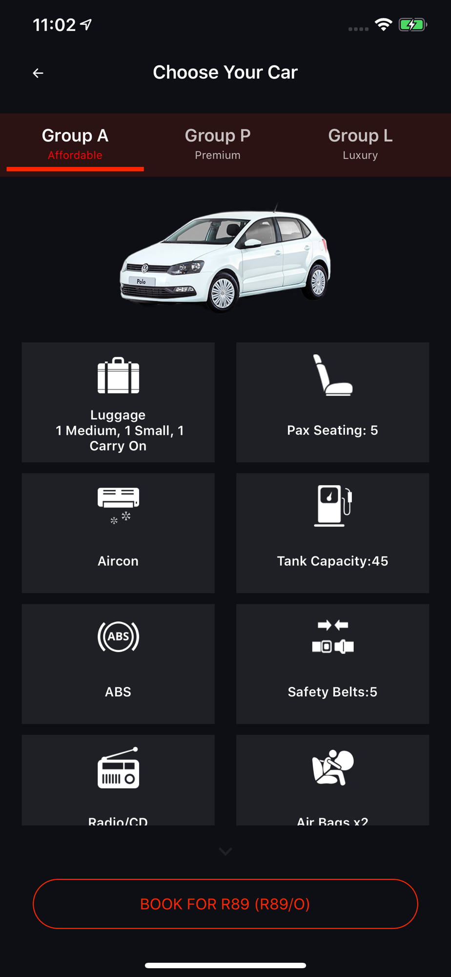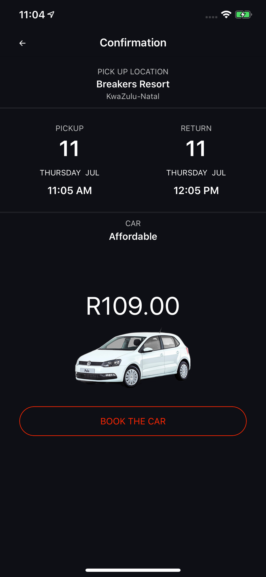 Book A Car - Tap on this if you are ready to book out a vehicle. We will take you through a step by step process. Once the payment has been made, the vehicle will become available through the "My Reservation" tab.
