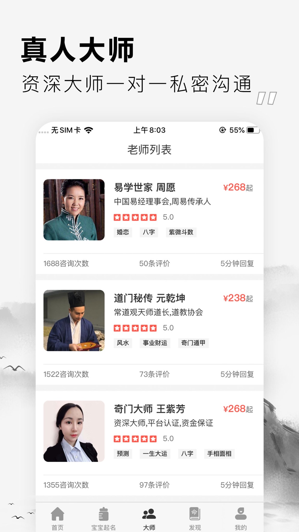 【一对一大师咨询】专业资深的命理大师,提供微信咨询服务,在线一对一,私密沟通交流,解决疑难,不满意随时退款;