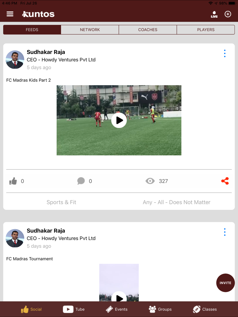 - Learn a sport or music or dance etc from an array of classes to choose from in your neighbourhood or find coaches to become a pro. Gyms, Dance Academies, Music Teachers etc can list their classes to get more members joining the classes or local school can get better enrolment for their classes. Kuntos has it all. Paid classes or free classes. You share status updates, write blogs or chat with your class. The admin of the class can send SMS, emails and chats to the class to keep them updated about the class.