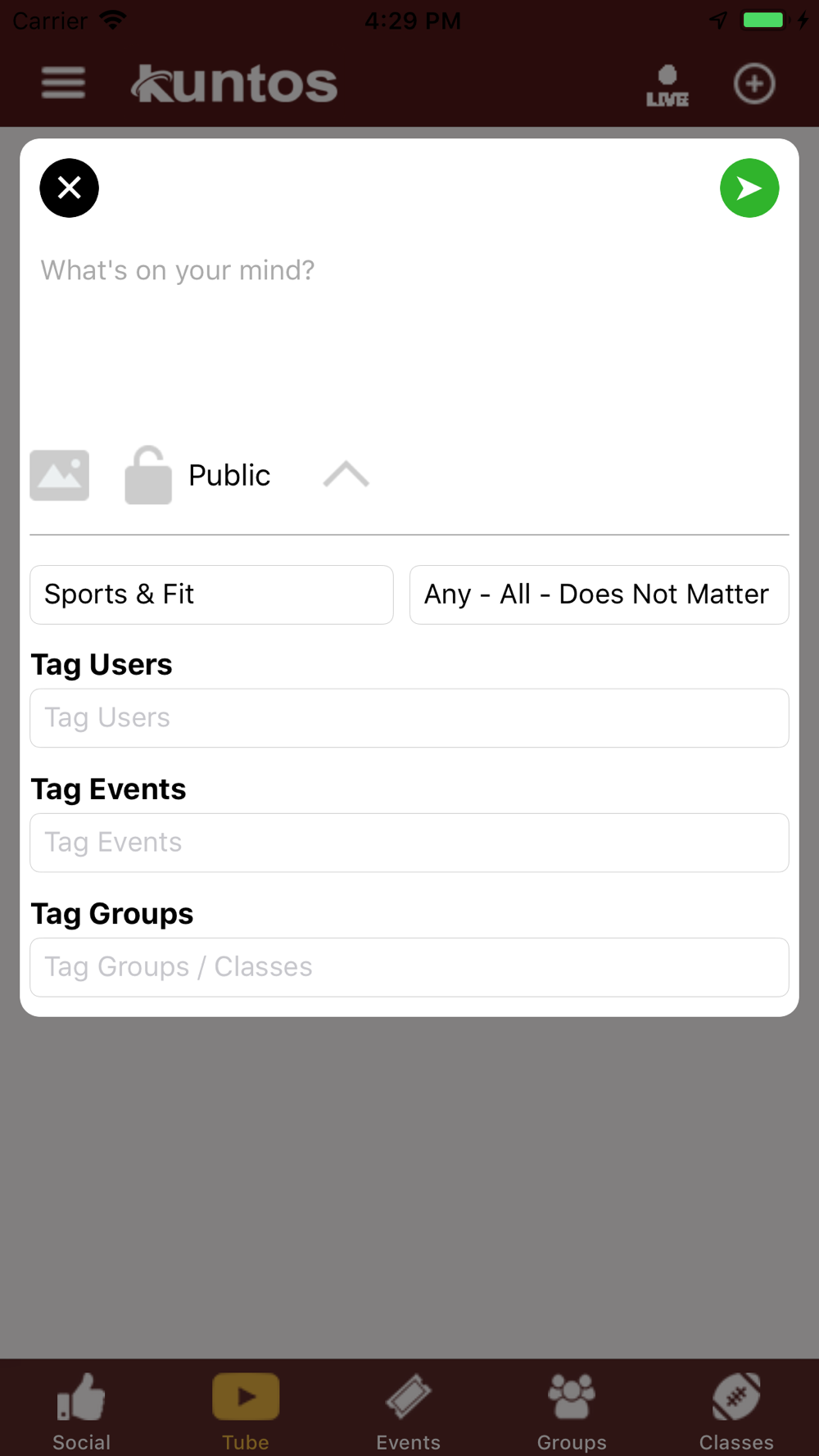 Kuntos! - A Neighbourhood Interest Based Social Networking App allows you to find classes and coaches or teachers, form teams, groups, clubs, fan clubs and find sporting events near you to participate in. Privacy protected - your phone number and contacts cannot be seen by anyone without your authorization.