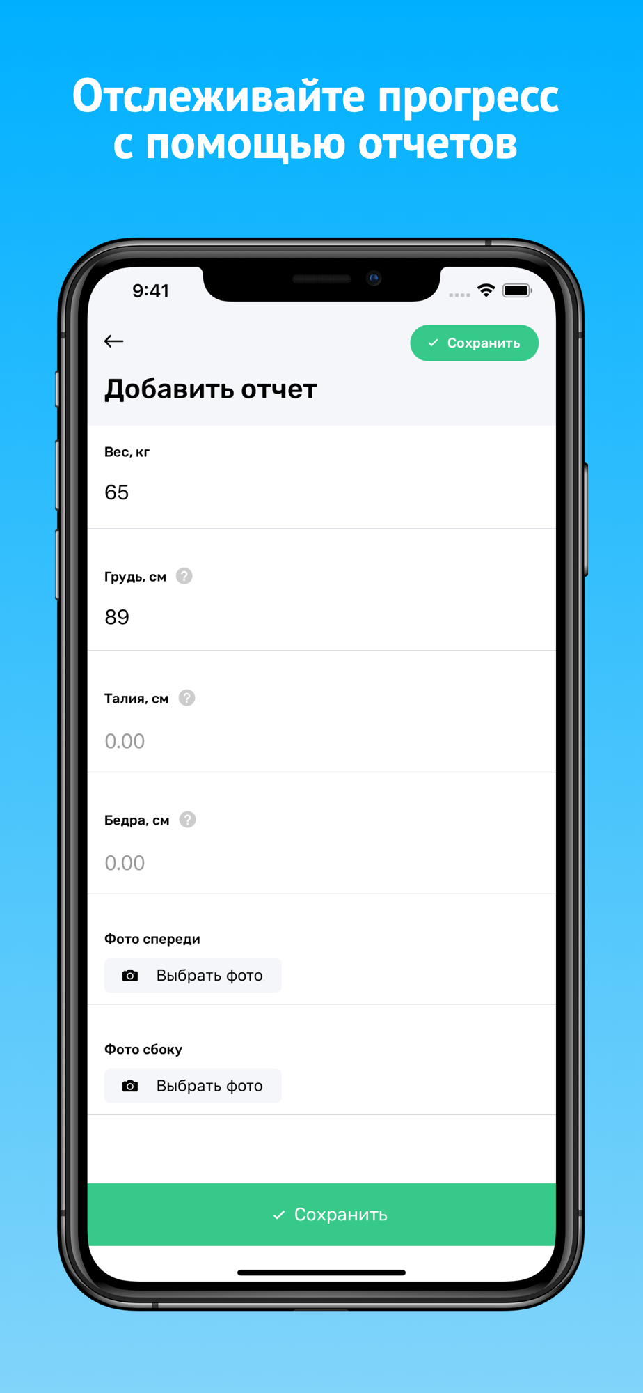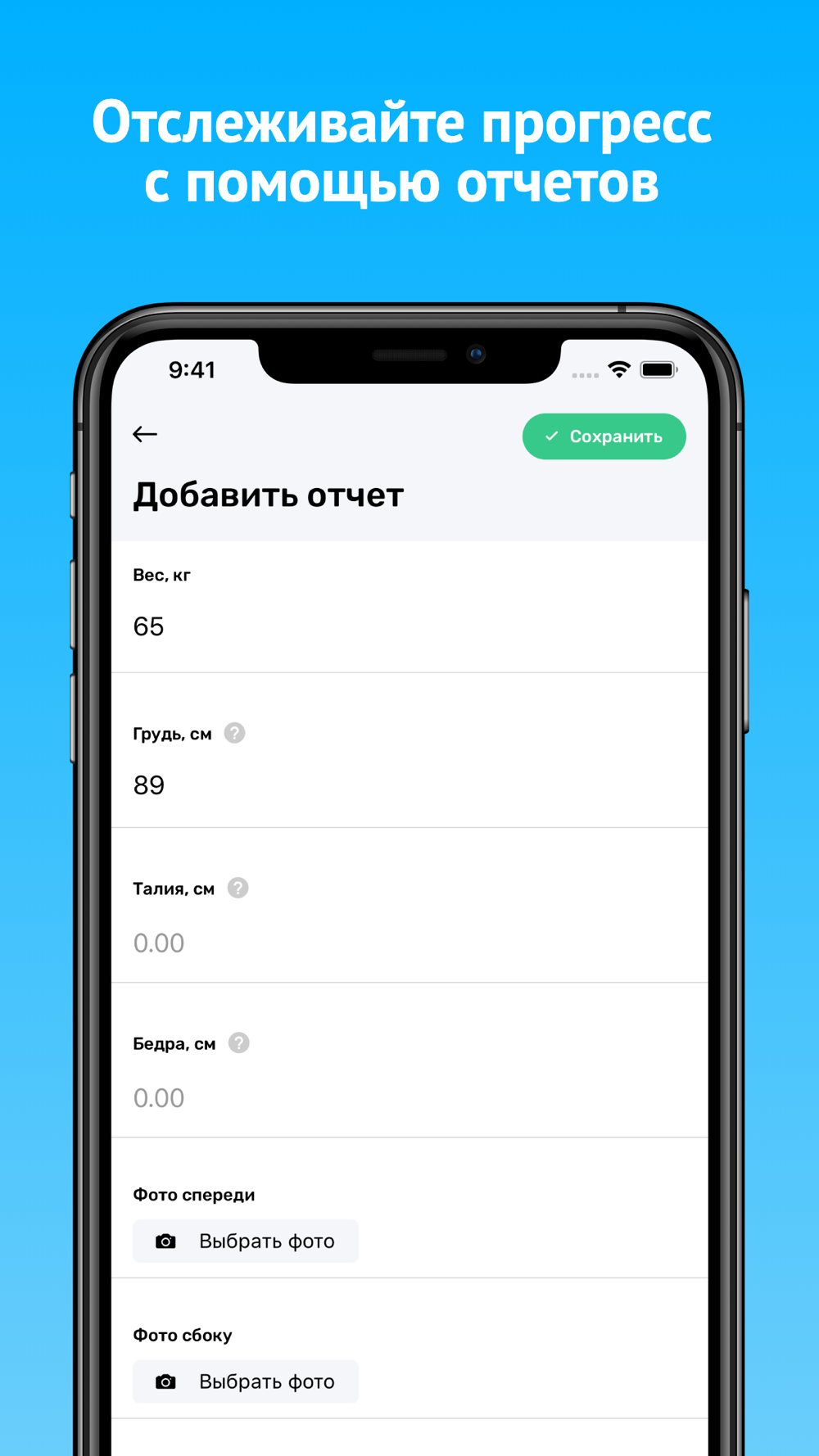 - Полный контроль за прогрессом клиента – стартовая анкета, отчеты, управление программой тренировок и программой питания, сроком доступа