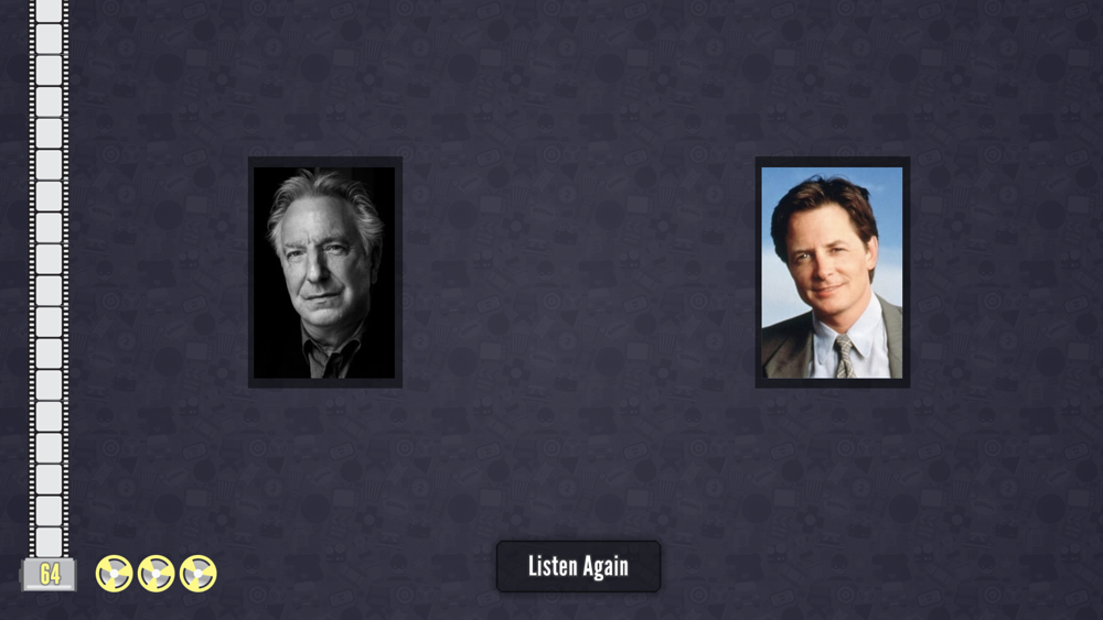 Listen to a line from a movie and choose the correct actor or movie out of the multiple ones that appear on screen. The faster you answer the greater your score.