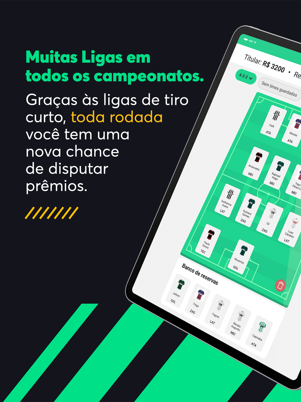Sendo assim você escolhe o campeonato que mais se identifica, seleciona os craques para montar seu time e já começa a competir por prêmios super bacanas.
