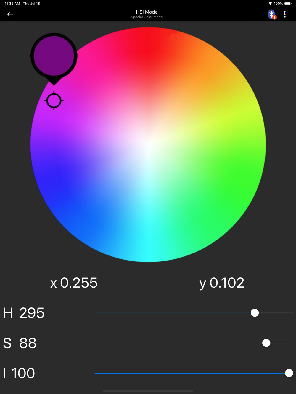 (3)HSI Mode:HUE, Saturation, Intensity. Getting quantified LED light color.