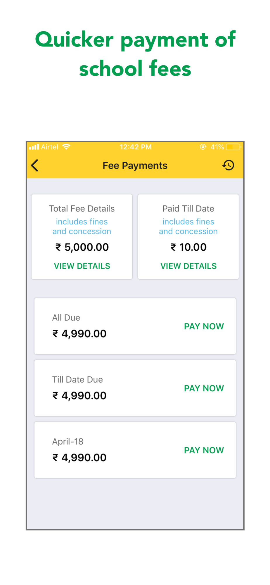 a. STUDENTS and PARENTS can view fee-due alerts, student details, transport details,