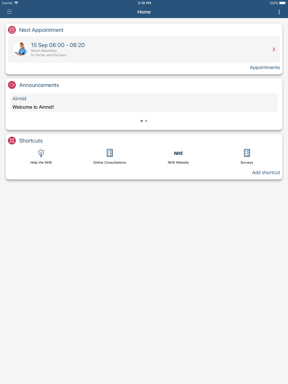 Welcome to Airmid UK, the new health management app from TPP. Airmid allows you to coordinate your care across the NHS, from requesting medication, to booking appointments and video consultations.