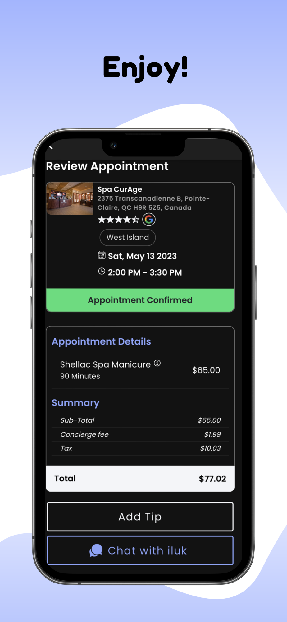 Finally an app where you can book all of your hair, beauty and wellness appointments! iluk is Montreal’s app to effortlessly book appointments at quality-verified beauty and hair salons, spas and barbershops near you! No more endlessly browsing Google to find a trustworthy salon, wasting time on the phone asking for pricing, or trying to find an availability that fits your schedule.