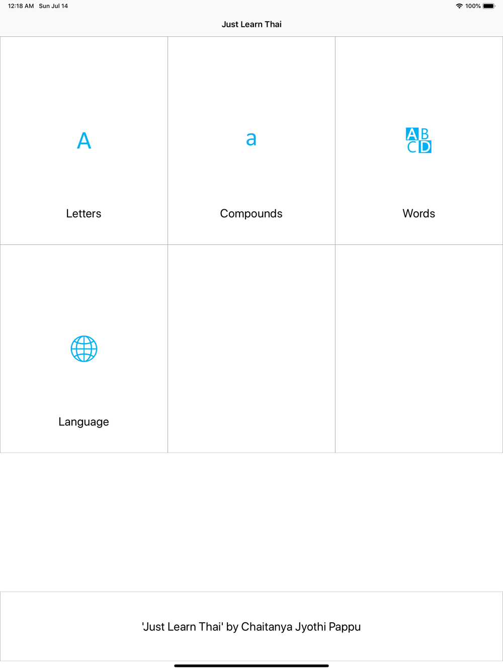 It is a simple application to learn to write and understand the letters in Thai language and also to learn commonly spoken words.