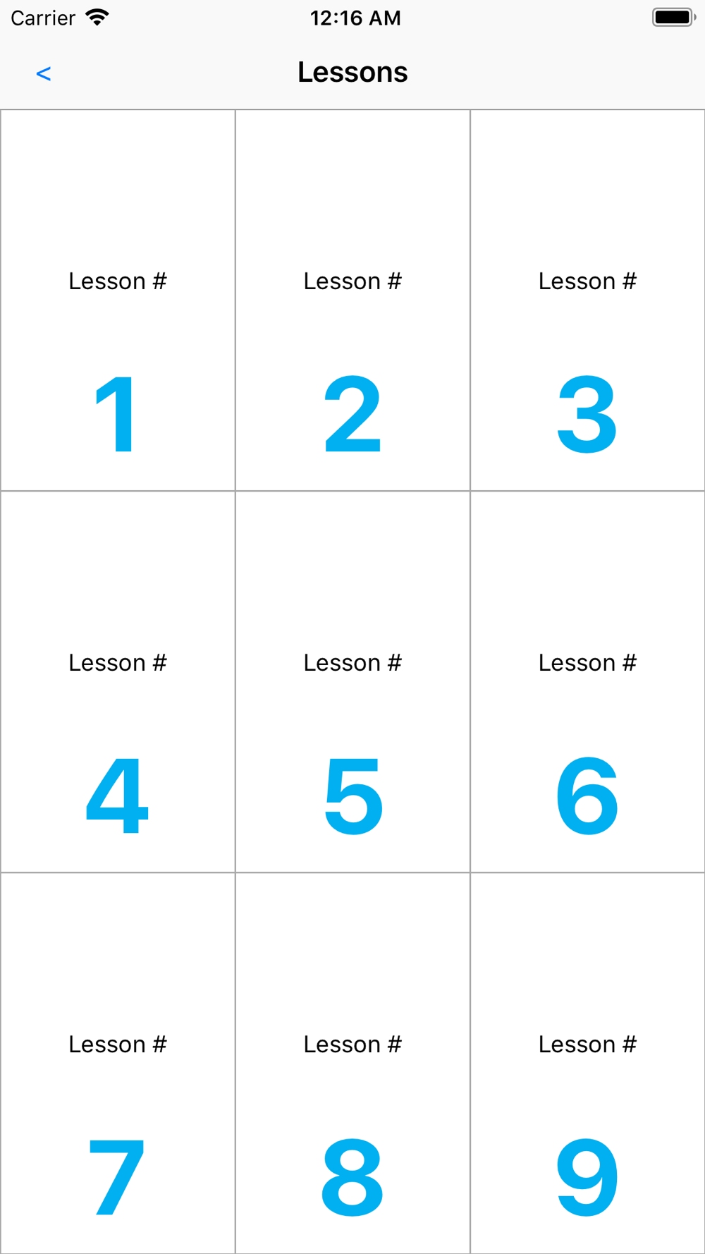 Around 500+ commonly used words are provided as set of 9 lessons for learning. These words include commonly used nouns, verbs and other important words of the language. Like alphabets, a list of words with meaning are provided for comprehension. Individual words can be learned as lessons with meaning and pronunciation. Audio of pronunciation is provided to learn speaking of words. Users can mark words that are already learned to speed up learning. A quiz with random questions from a lesson is provided to check understanding.