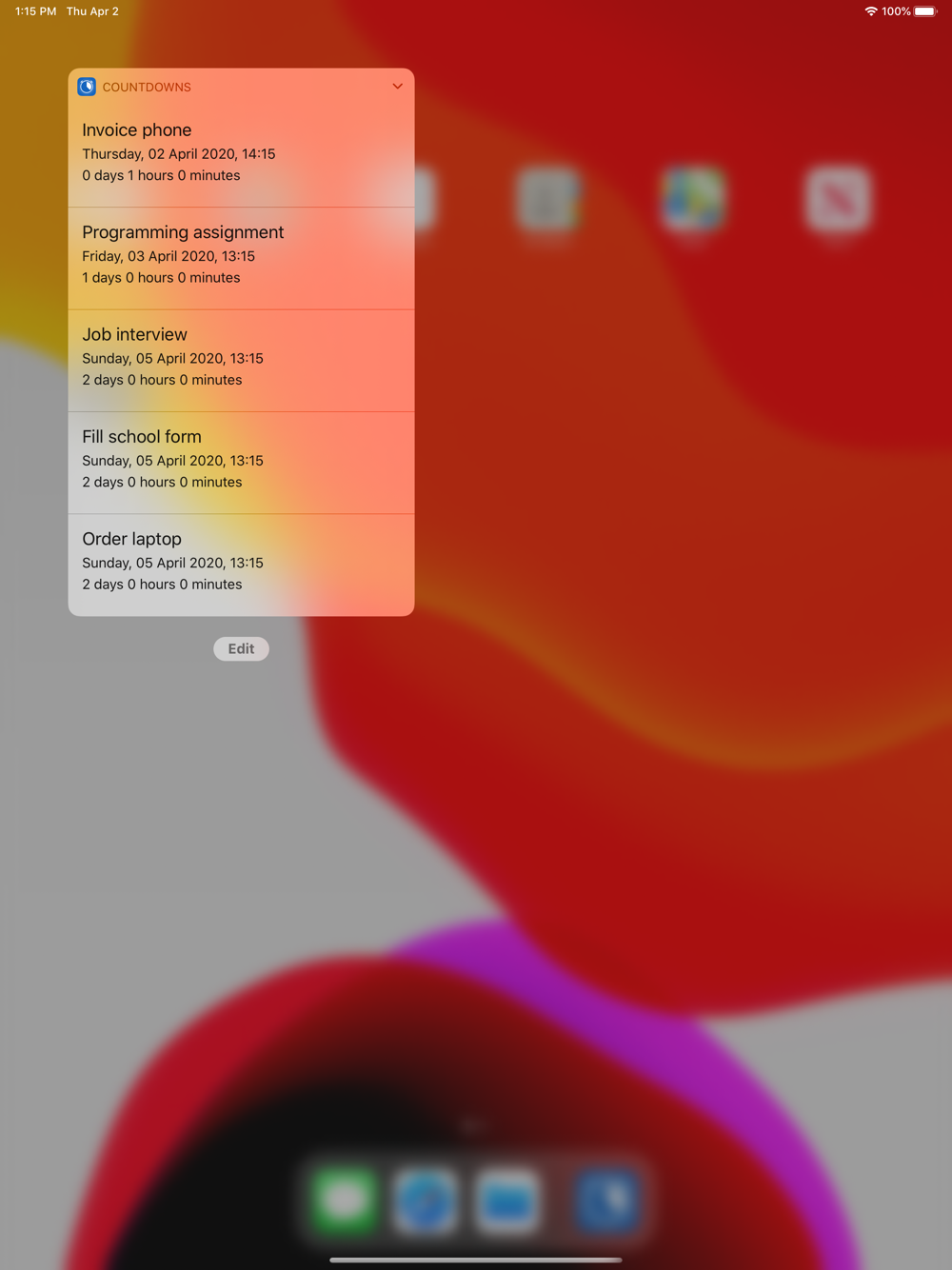 All you have to do is to write a headline, choose date, choose time and you are set. You can also choose if you want to see event in notification center widget. Widget contains basic information about your event with its countdown.