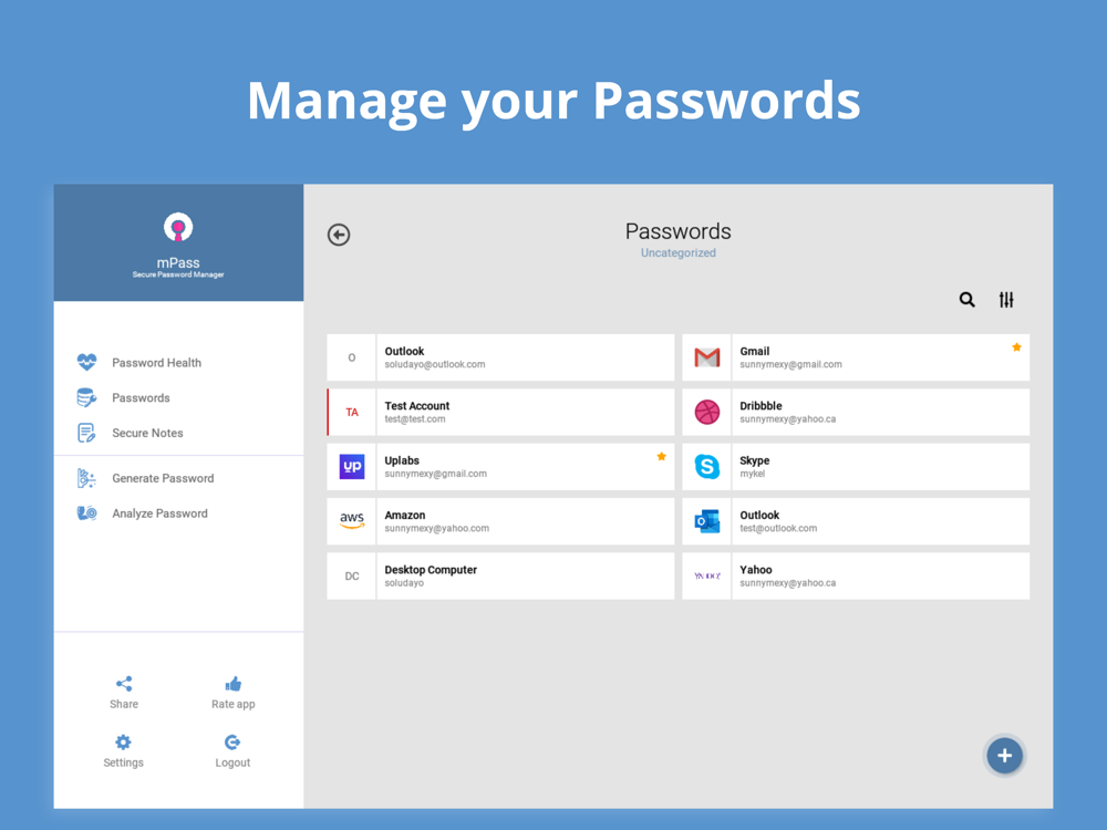 mPass is the best Secure Cross-Platform Password Manager and Password Vulnerability Checker!