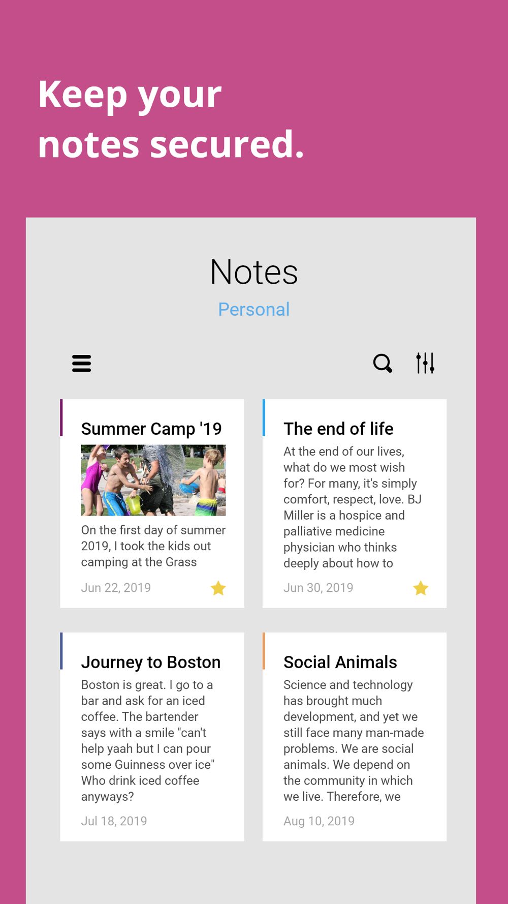 You can easily restore your entire account to a new phone or computer (in case of a loss or an upgrade). If you like to you multiple devices to access your data, your phone, tablet or computer automatically synchronized with the latest copy of your data.