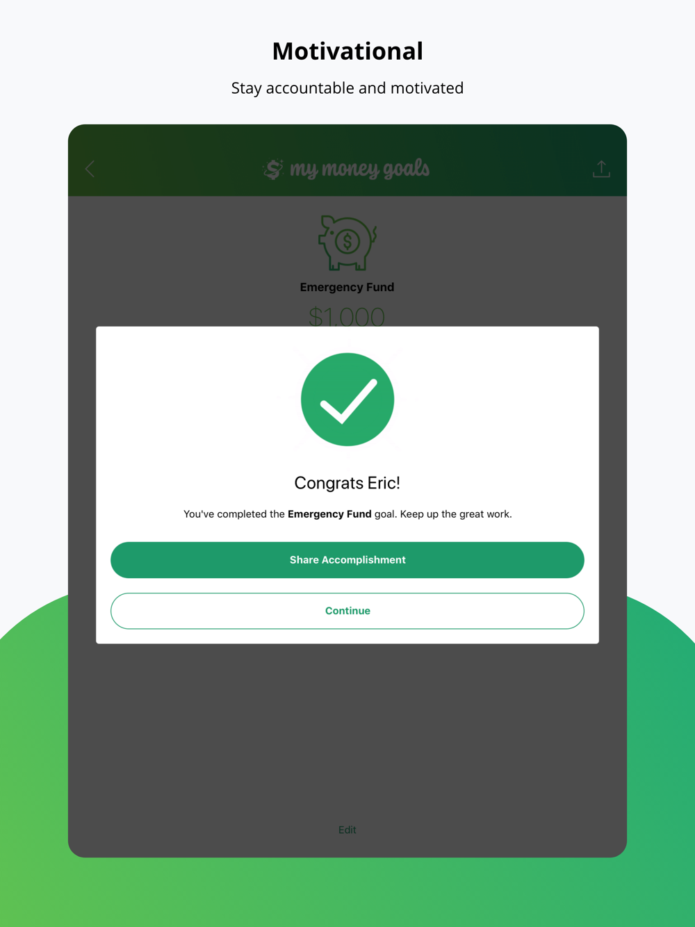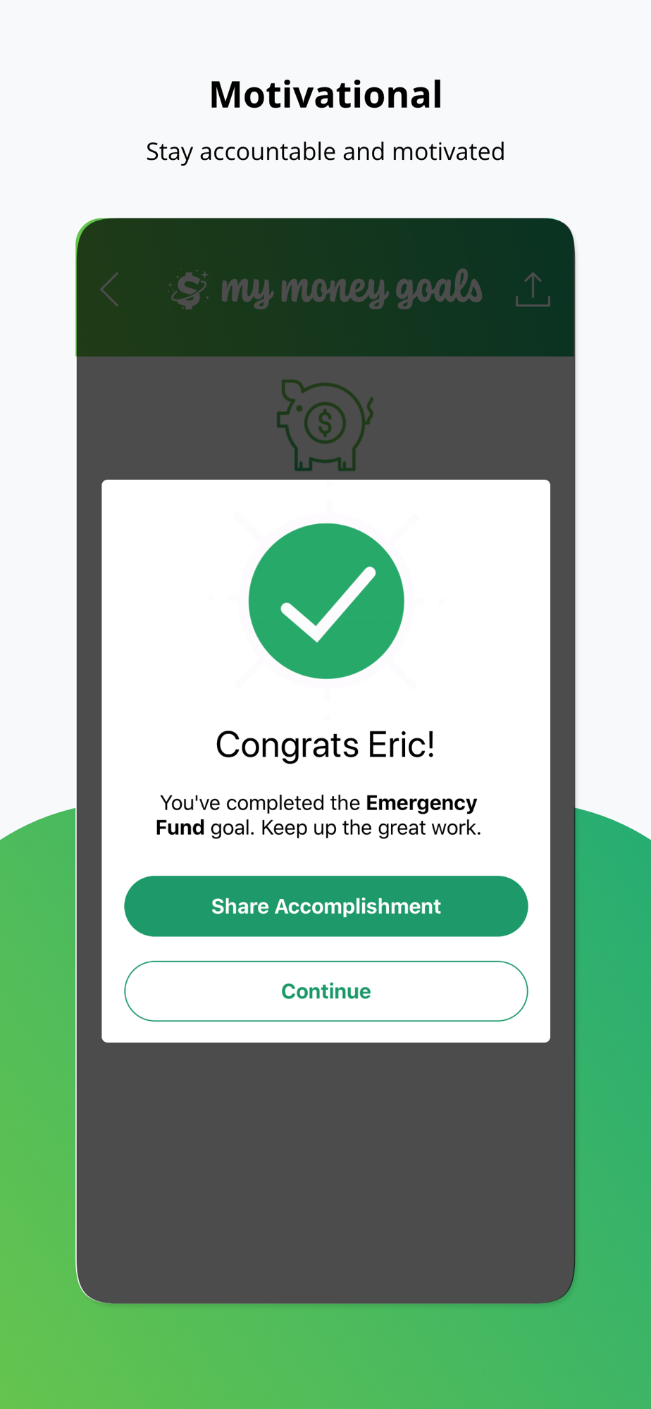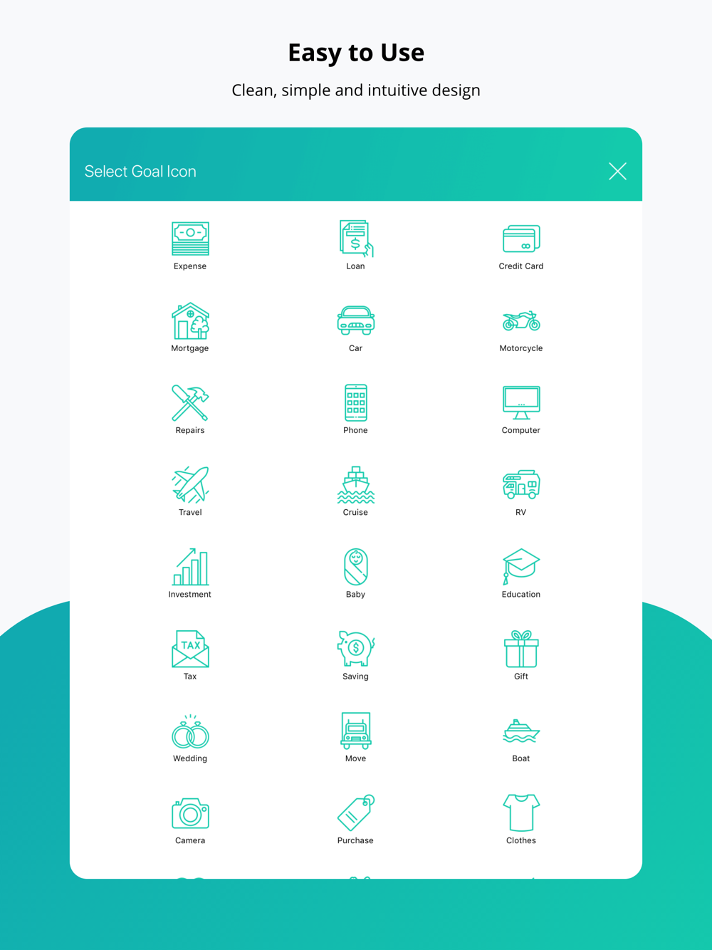 Whether you are trying to save money, pay off debt, plan a vacation or make a long awaited purchase, our app is here to help. Stay accountable and motivated by tracking all your financial goals with our simple and user-friendly interface.