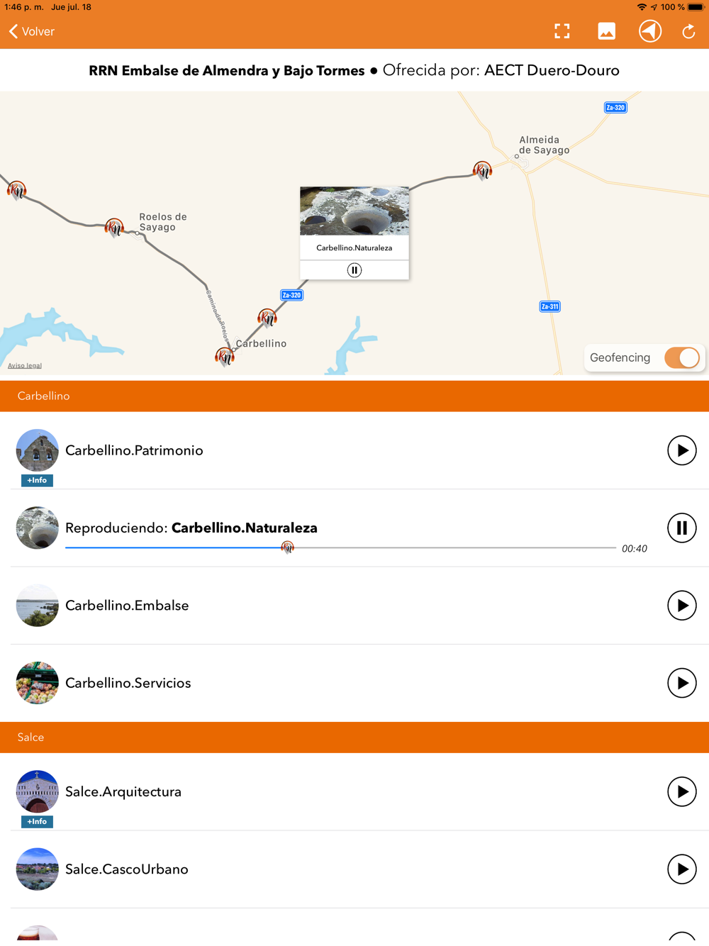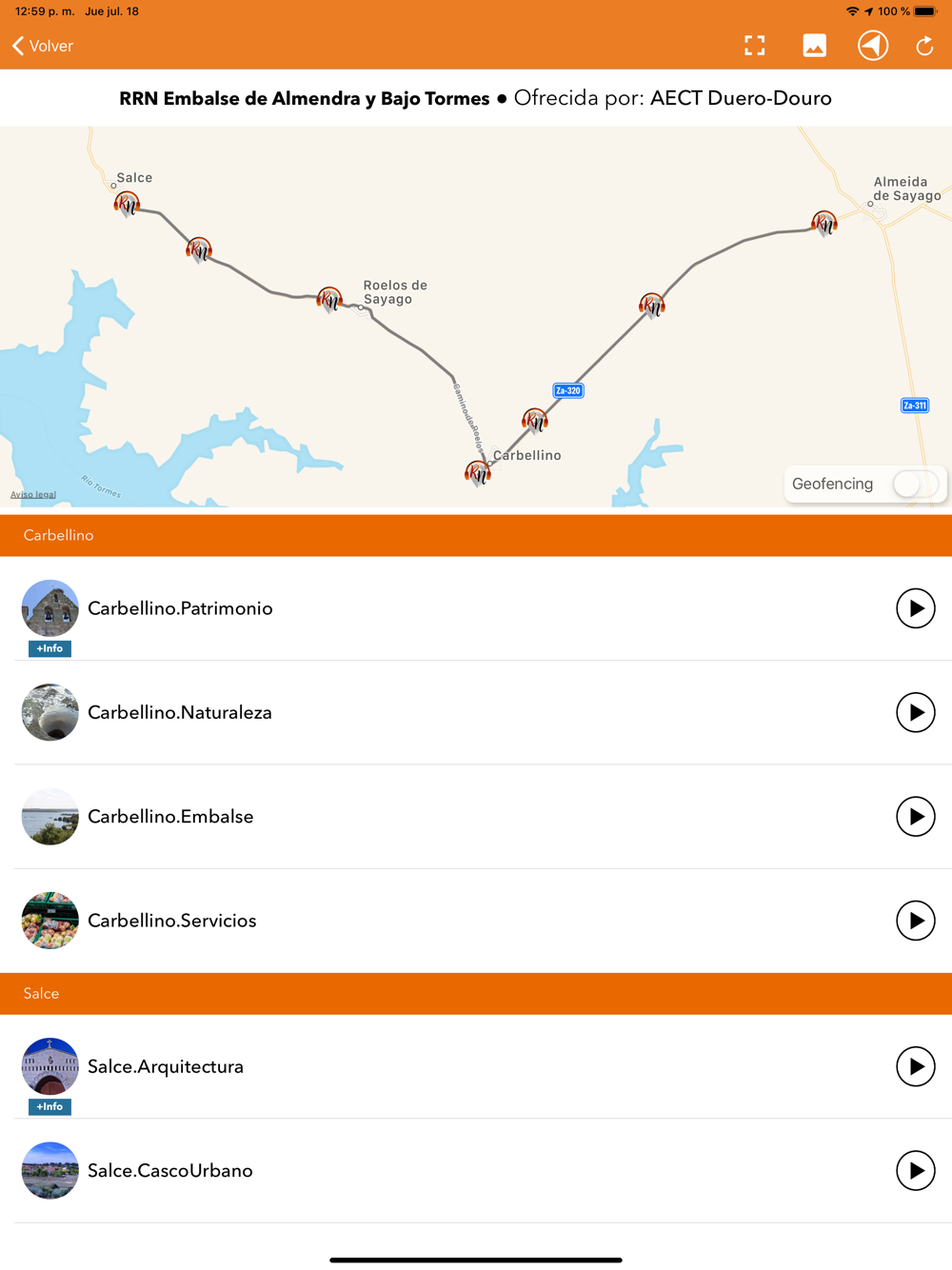 11. Gracias al mapa incorporado, podrás conocer en todo momento tu ruta y los audios disponibles, pudiéndolos escuchar en ruta o cómodamente mientras descansas del viaje.