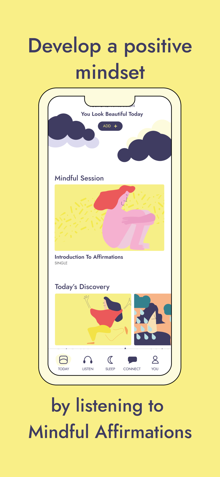 Hundreds of pre-recorded affirmations divided into playlists and categories such as Stress, Daily Happiness, Motivation and many more!