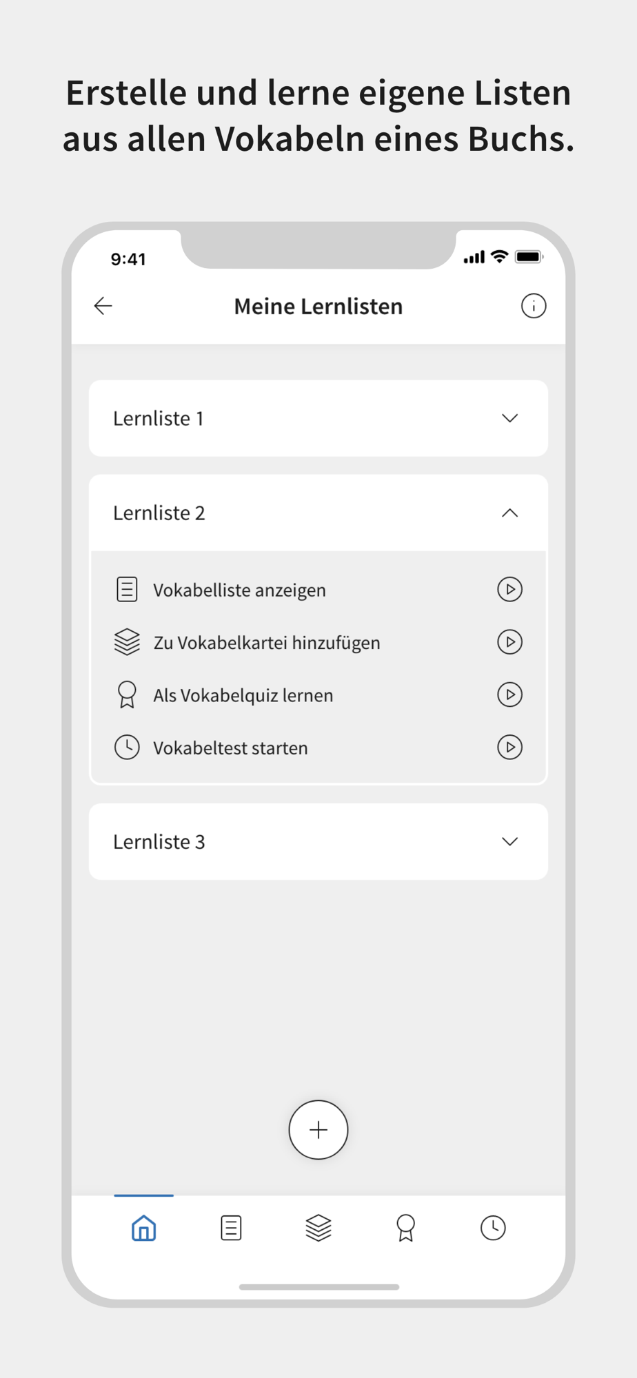 • Lege eigene Lernlisten mit den Vokabeln aus dem Buch an.