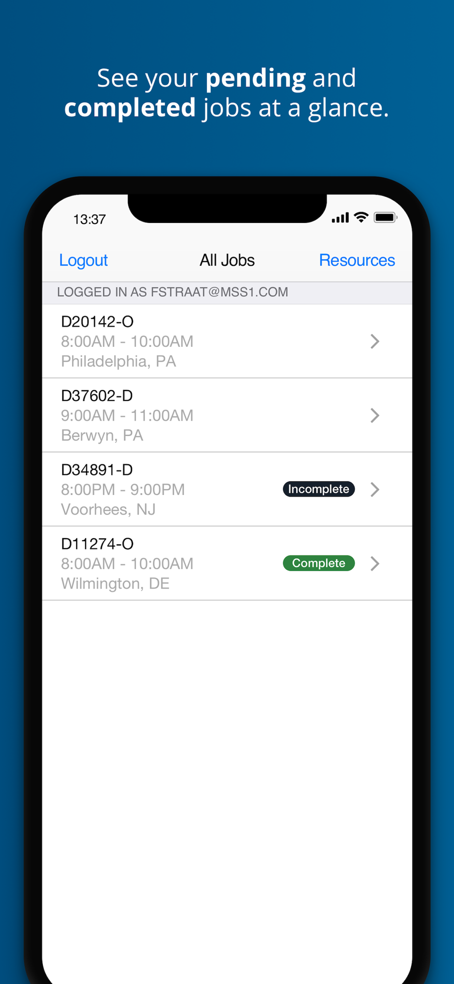 • Once populated, the Today’s Jobs list and details are accessible even beyond cell-coverage areas