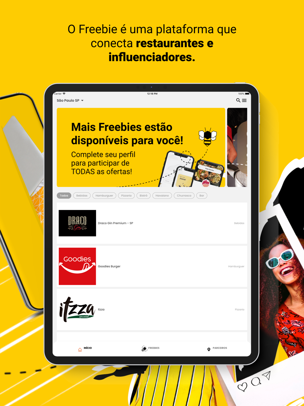 O Freebie é uma plataforma de Marketing de Influência, conectamos pessoas verdadeiramente influentes e restaurantes.