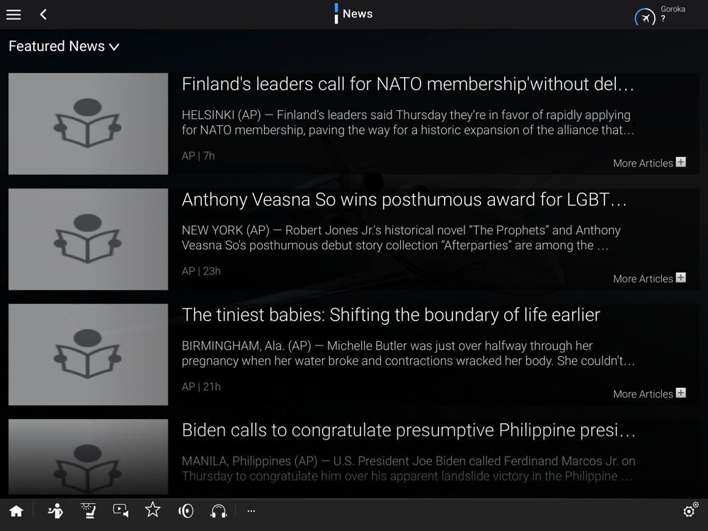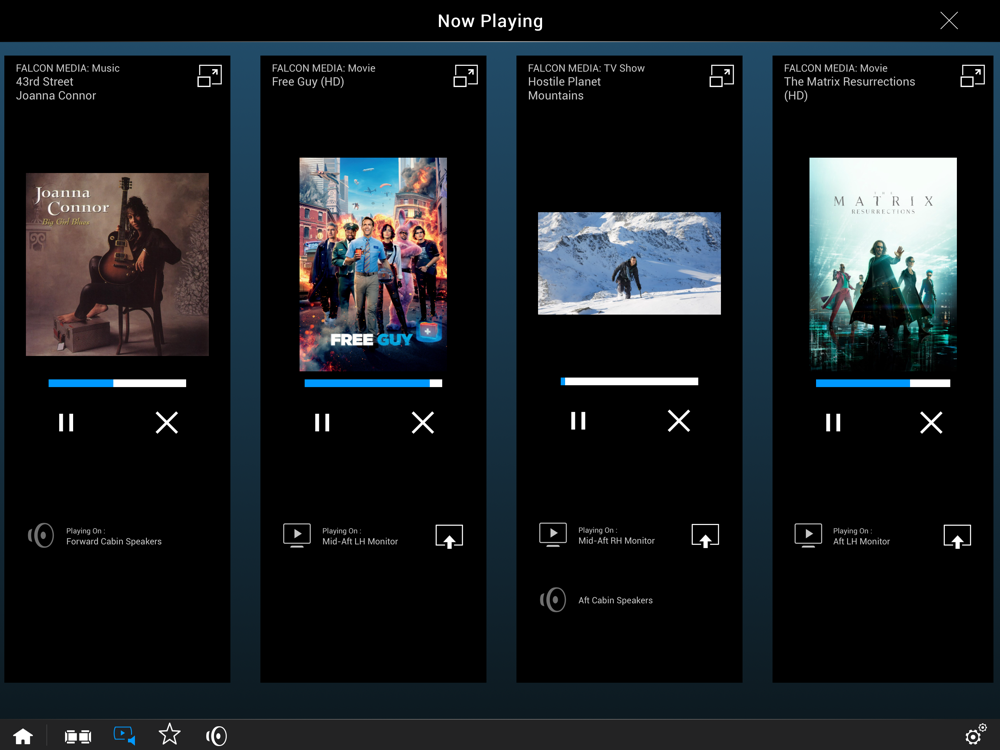 As you browse selections on the content offerings menu, the intuitive technology design creates an enjoyable user experience with an inviting style that is consistent across all Falcon applications in the cabin. The way FalconMedia presents information to you will make it feel as if you are using your home system.