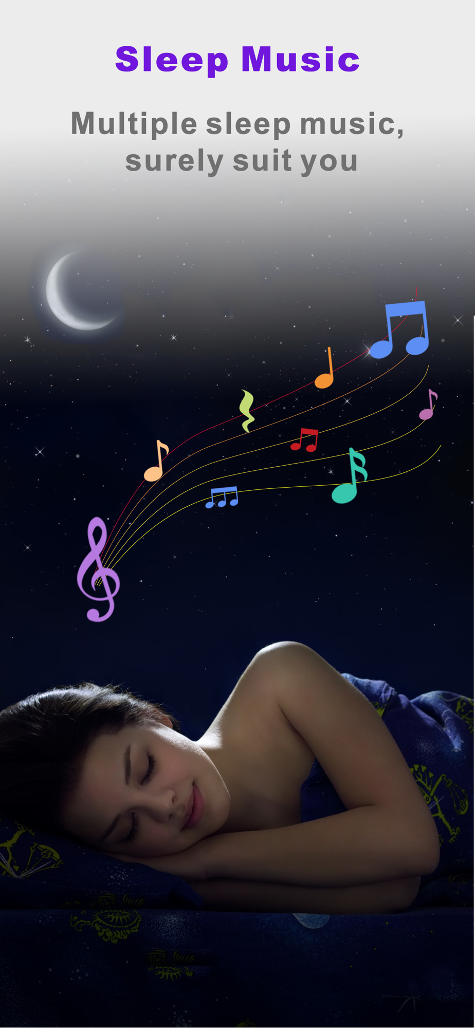 Multiple sleep music help you relax and fall asleep quickly. Relaxing Nature sound, white noise sound, calm mixed sound & music, classic violin, beautiful music box melody, light music and gentle music, all the sleep Music updates weekly. Find your favorites in ASleeper. Company you till you fall asleep.