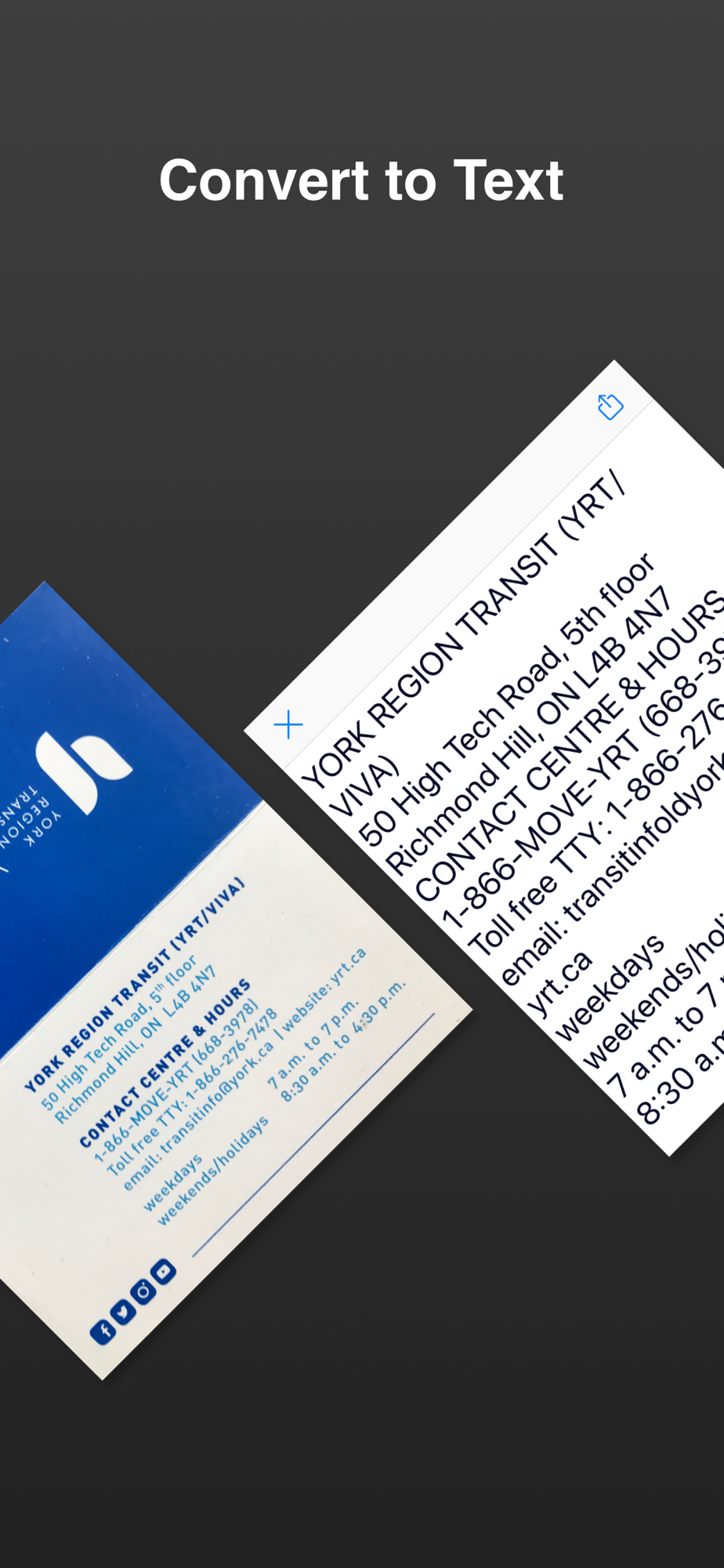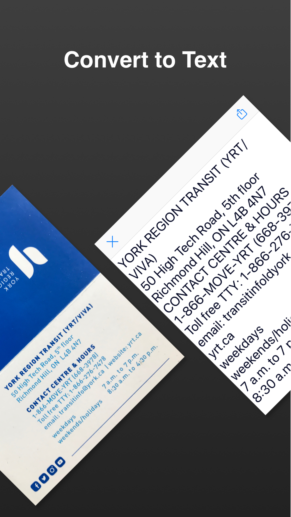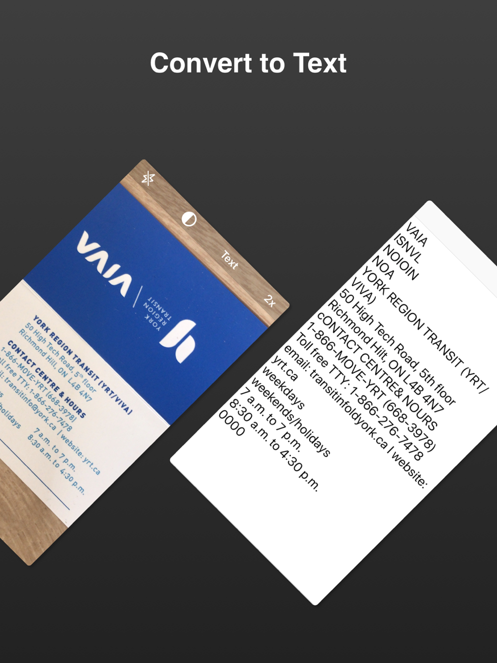 • Extract text from the camera through Machine Learning, making the text very easy to read and share