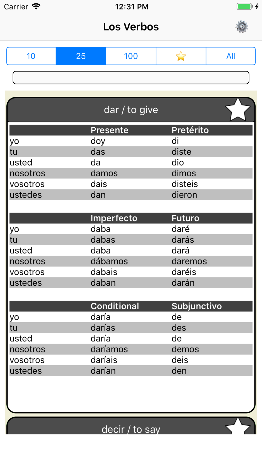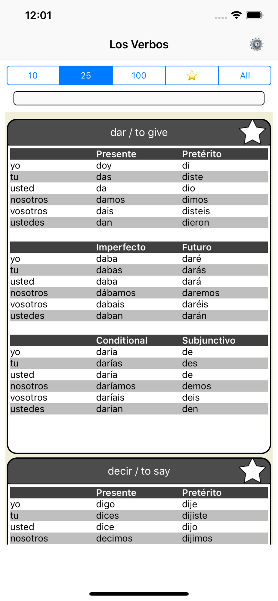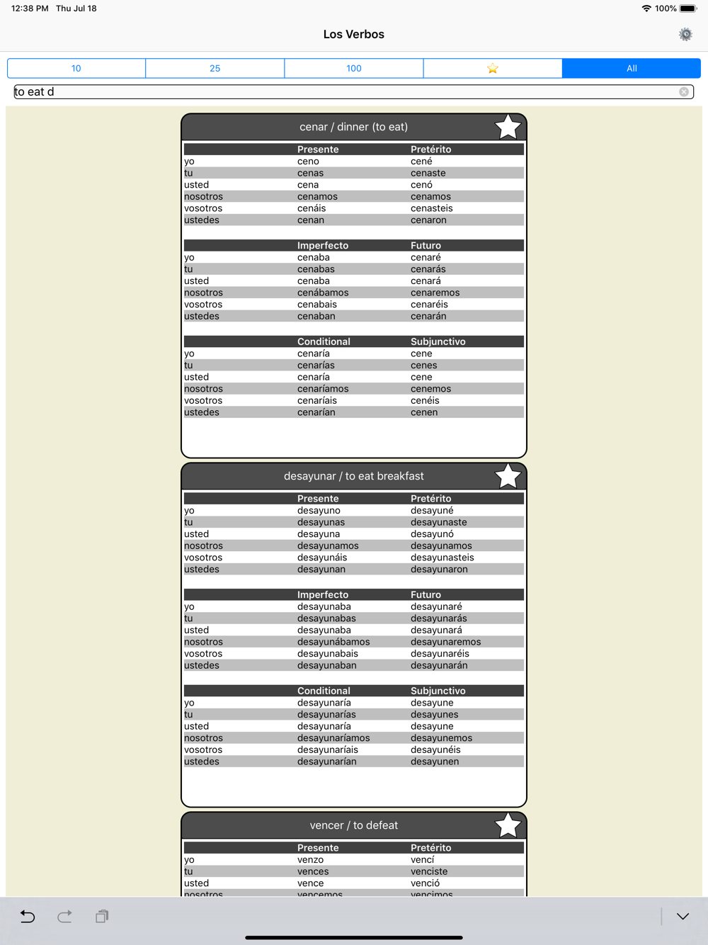 A Spanish Verb Conjugation app containing several hundred of the most common verbs.