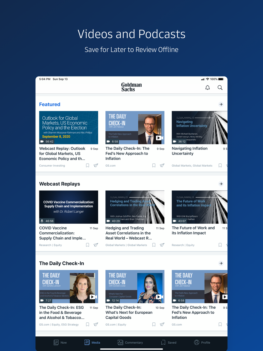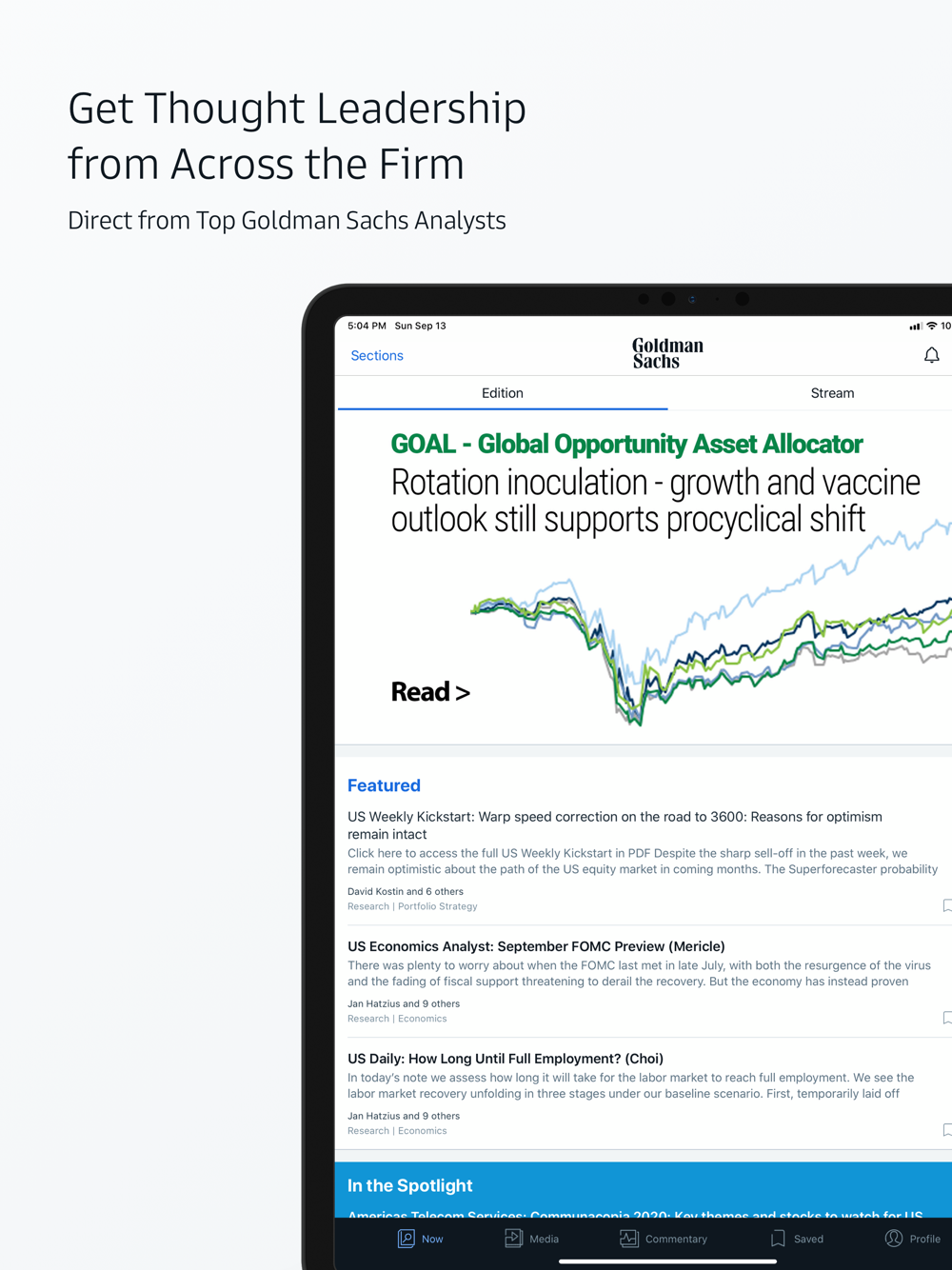 The new GS Now mobile app brings you anytime, anywhere access to the leading edge of Goldman Sachs’ market views and thought leadership.
