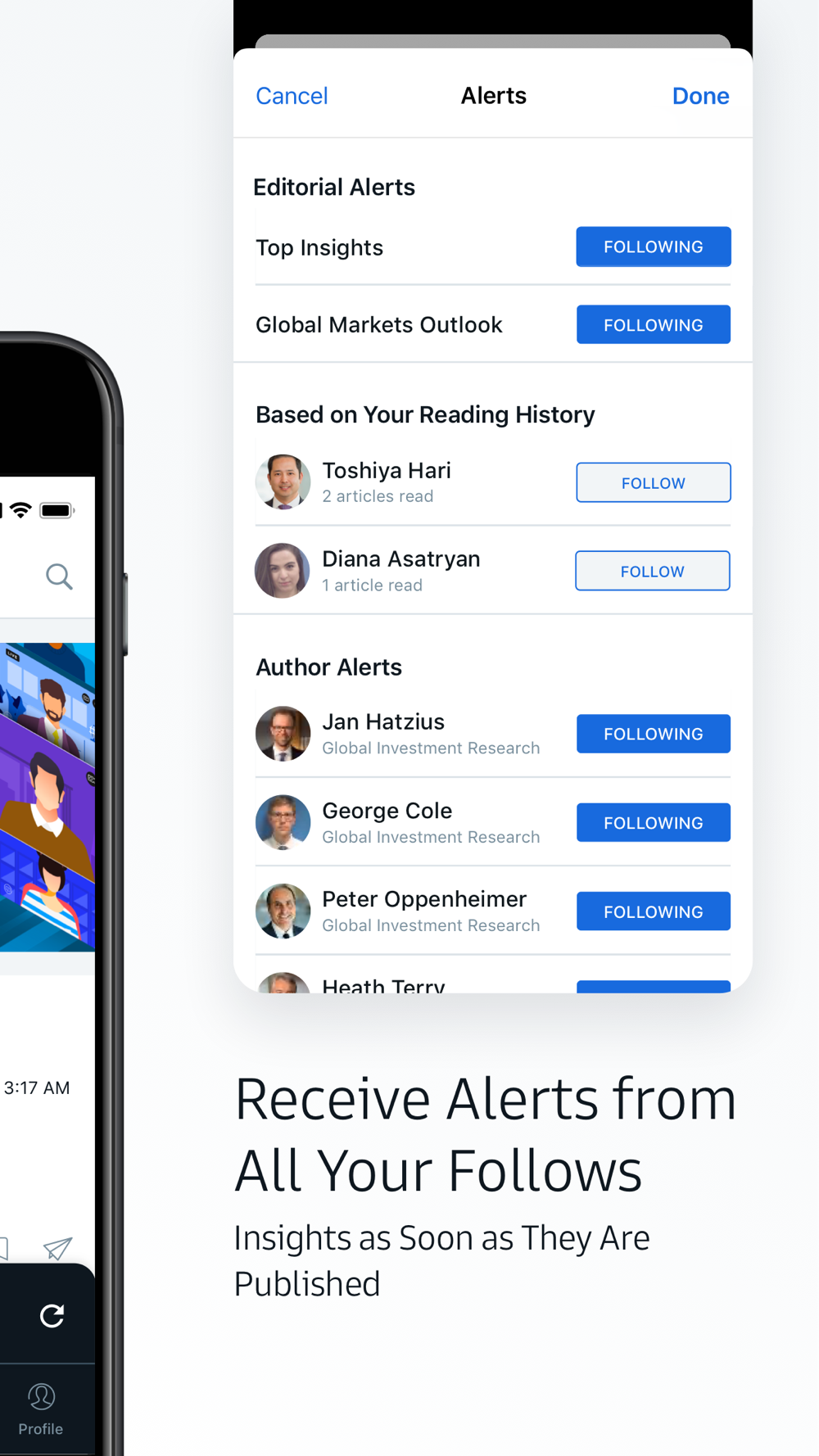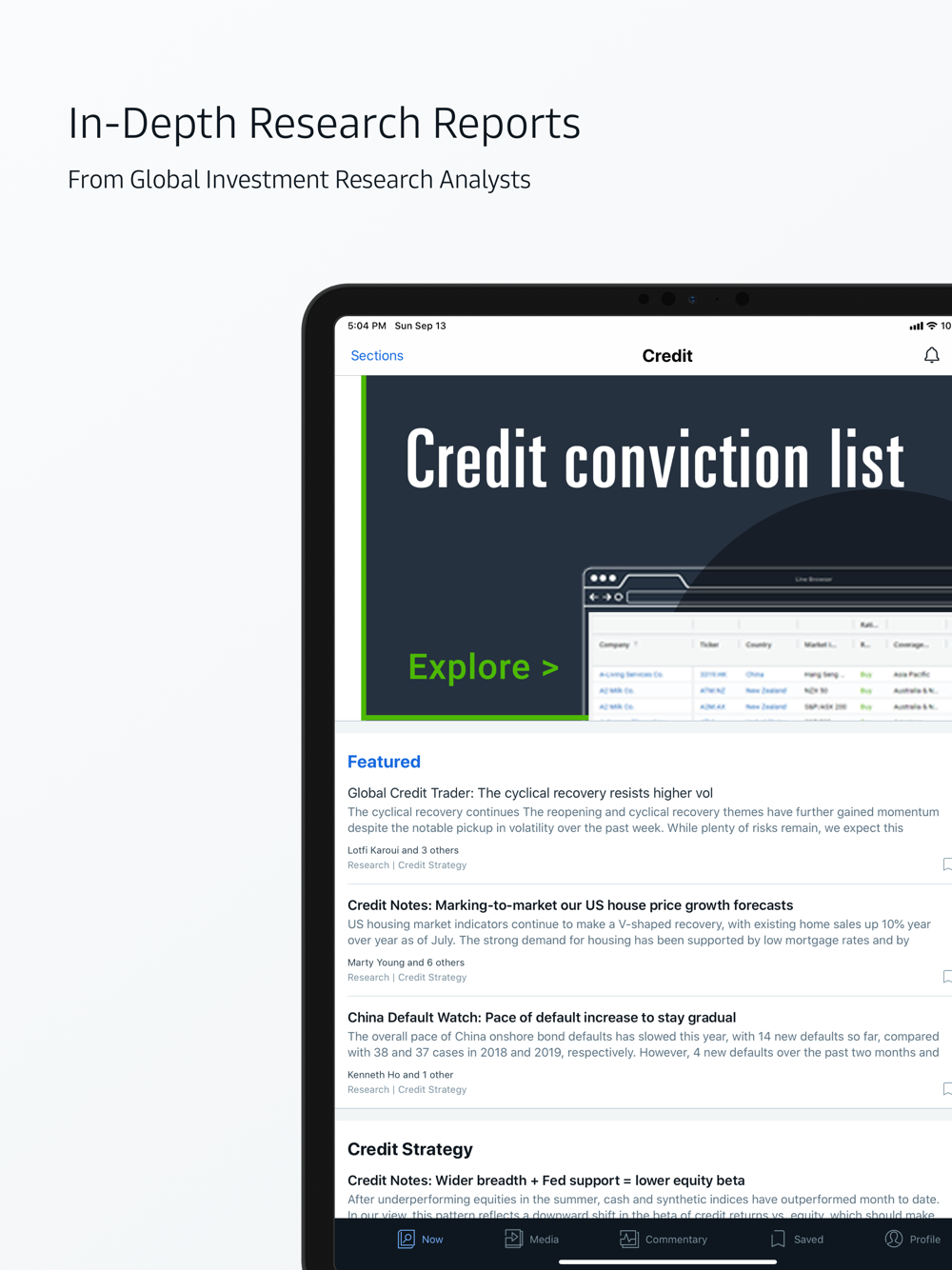 So stay ahead of the game: connect directly with authors, sales and colleagues as insights become breaking news. Get alerts when your most trusted authors publish a new note or report. Save for later and reflect offline.