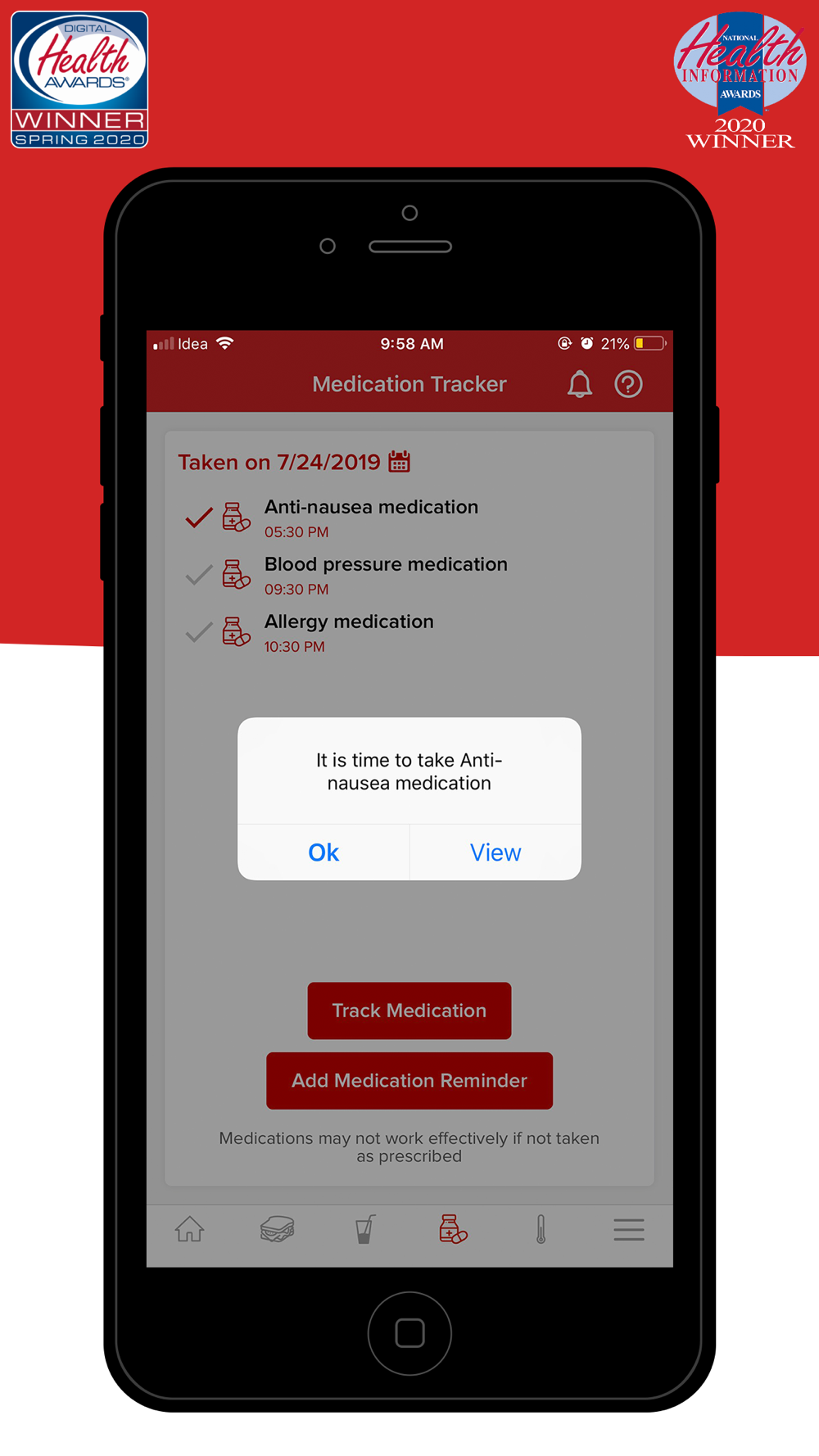 • Medication Tracker: Set reminders and check off medications as you take them.