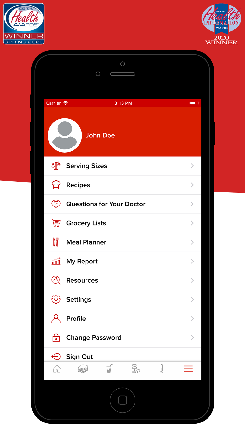 • Meals: Use the Health Manager to access healthy recipes, plan your meals, and find out the correct serving sizes of foods you eat.