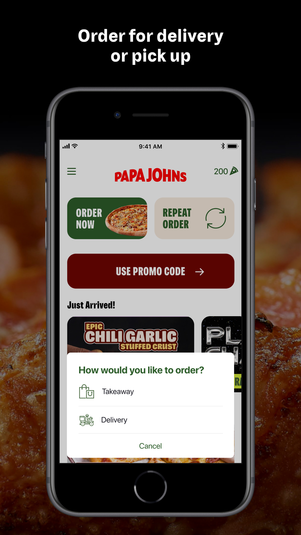 We’ve made ordering even easier! Download the new official Papa Johns pizza app and order your favorite pizza, sides, and drinks for delivery or takeaway. Want to dine in? No problem! Order online and eat at one of our pizza restaurants in UAE.