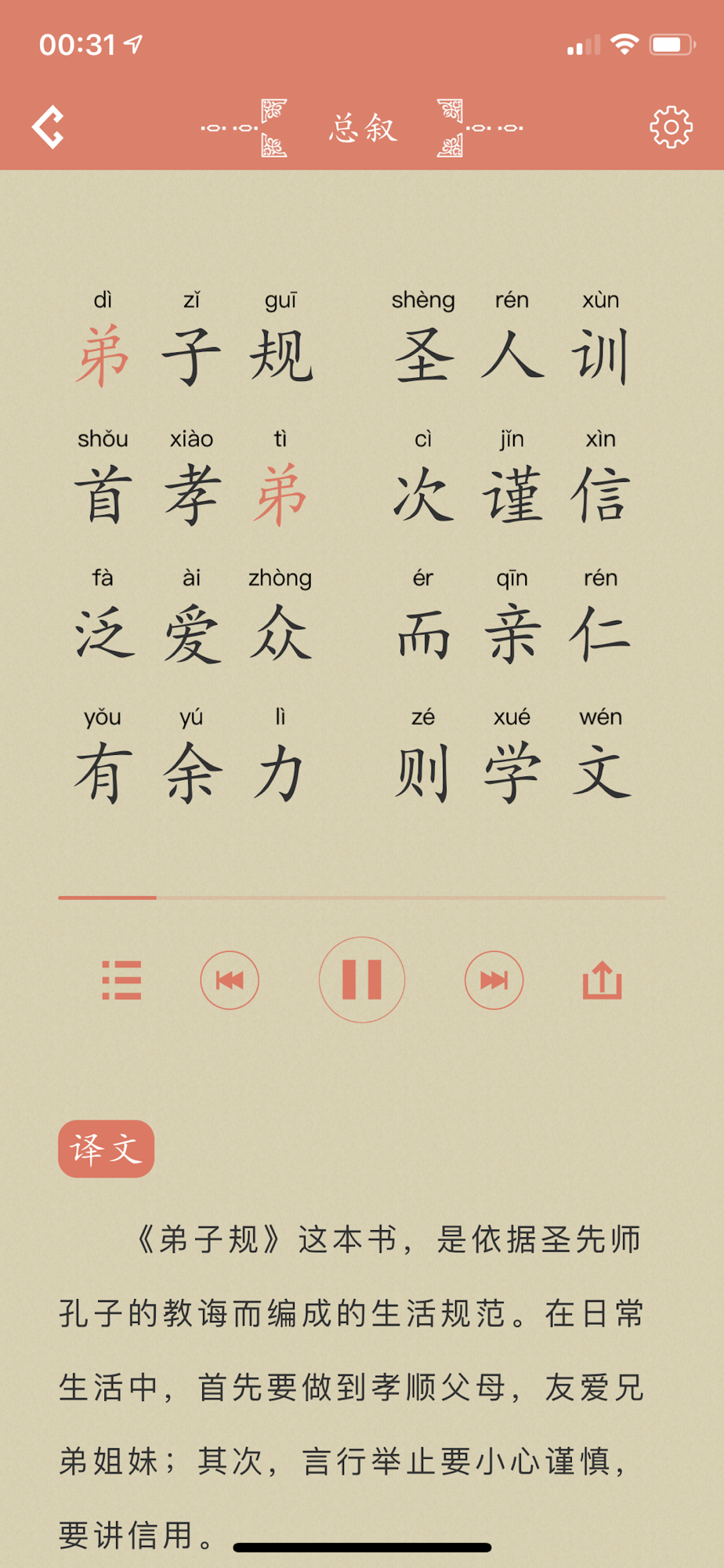 2. 《弟子规》逐句翻译,逐句有声朗读和疑难词解释