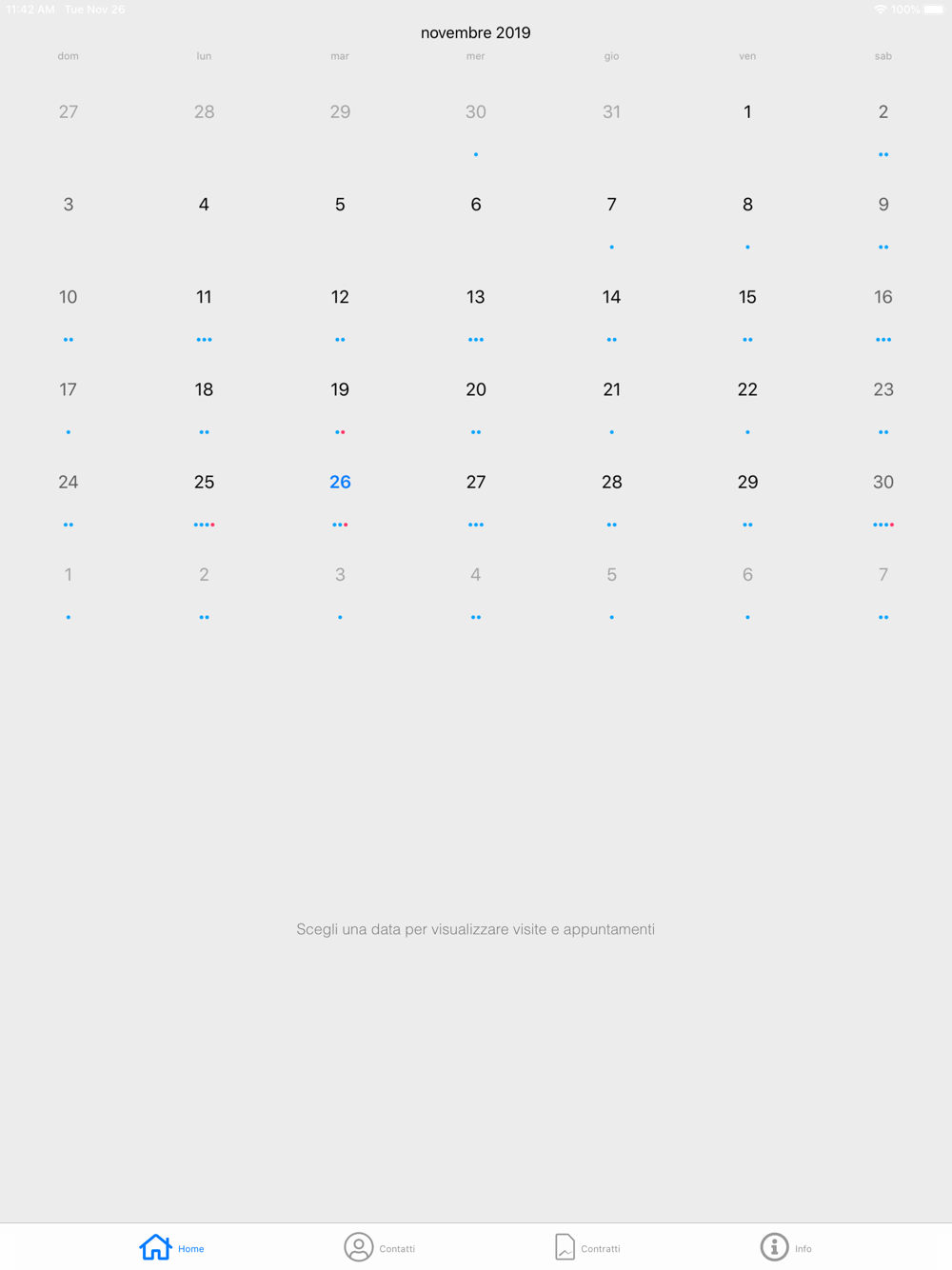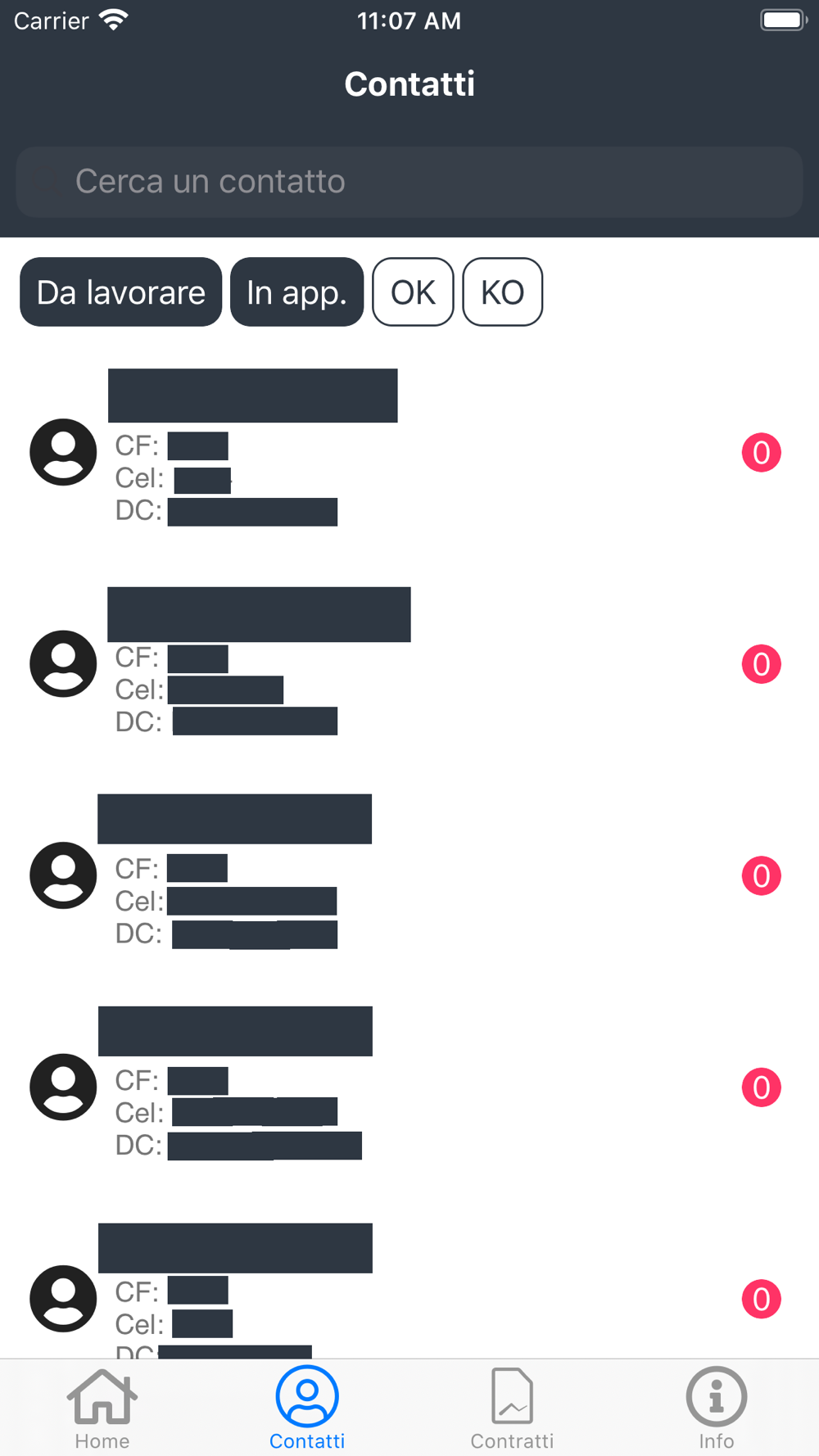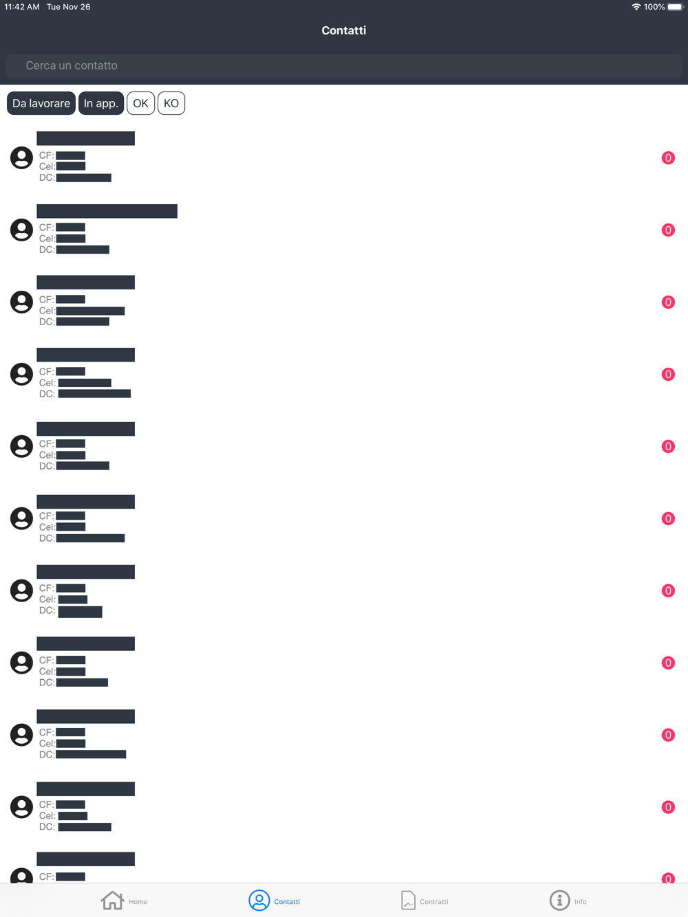 Ogni “Contatto”, cioè i dati anagrafici di una persona e alcuni dettagli utili per la sua gestione, permette di creare “Appuntamenti” e/o un Contratto ad esso collegato.