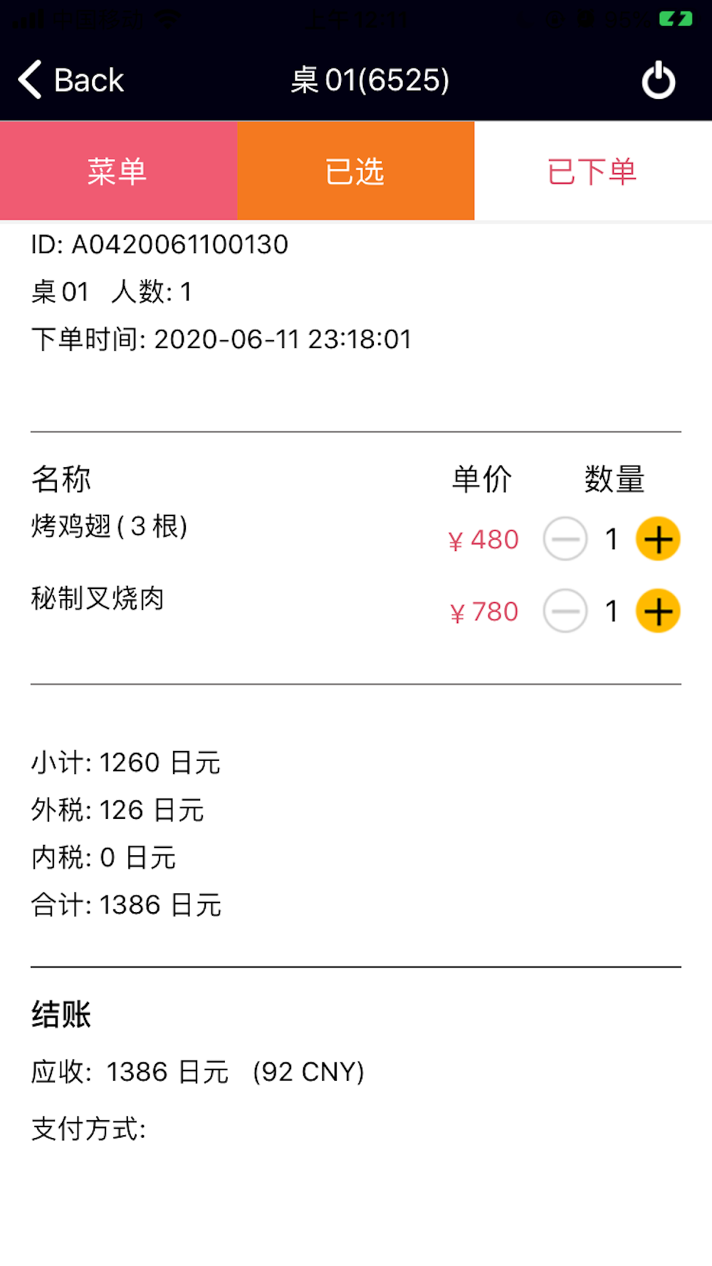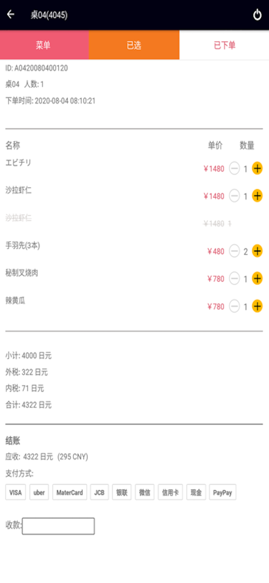 主要功能有点菜,下单,追加菜品,退菜,更换席位等功能,支持多语言。服务员可以在登录页选择自己的常用语言。登录账号由服务商提供。