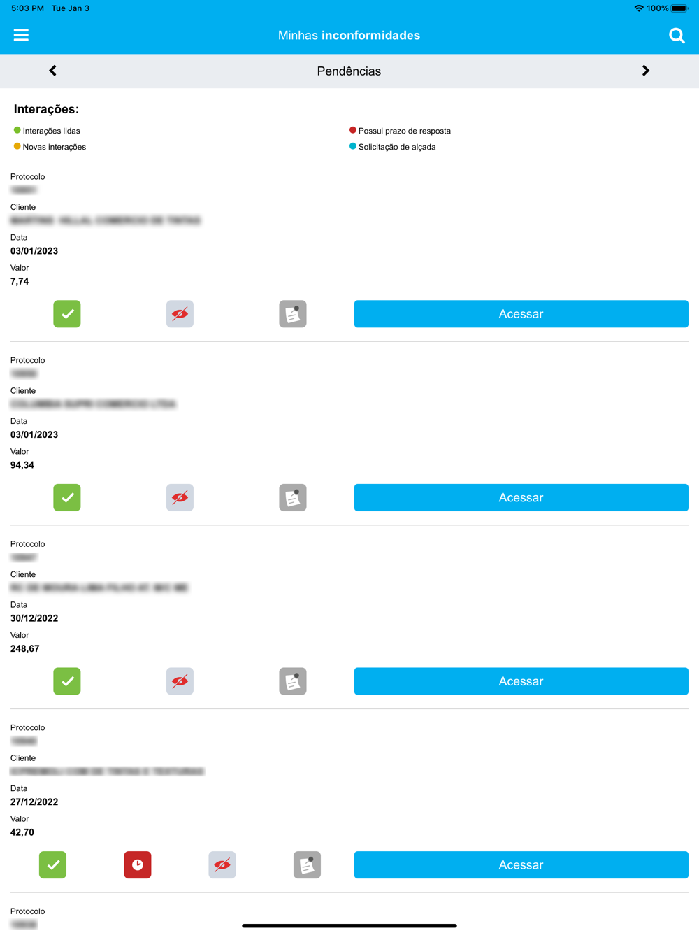 • Minhas Inconformidades: acompanhar o andamento dos protocolos abertos.