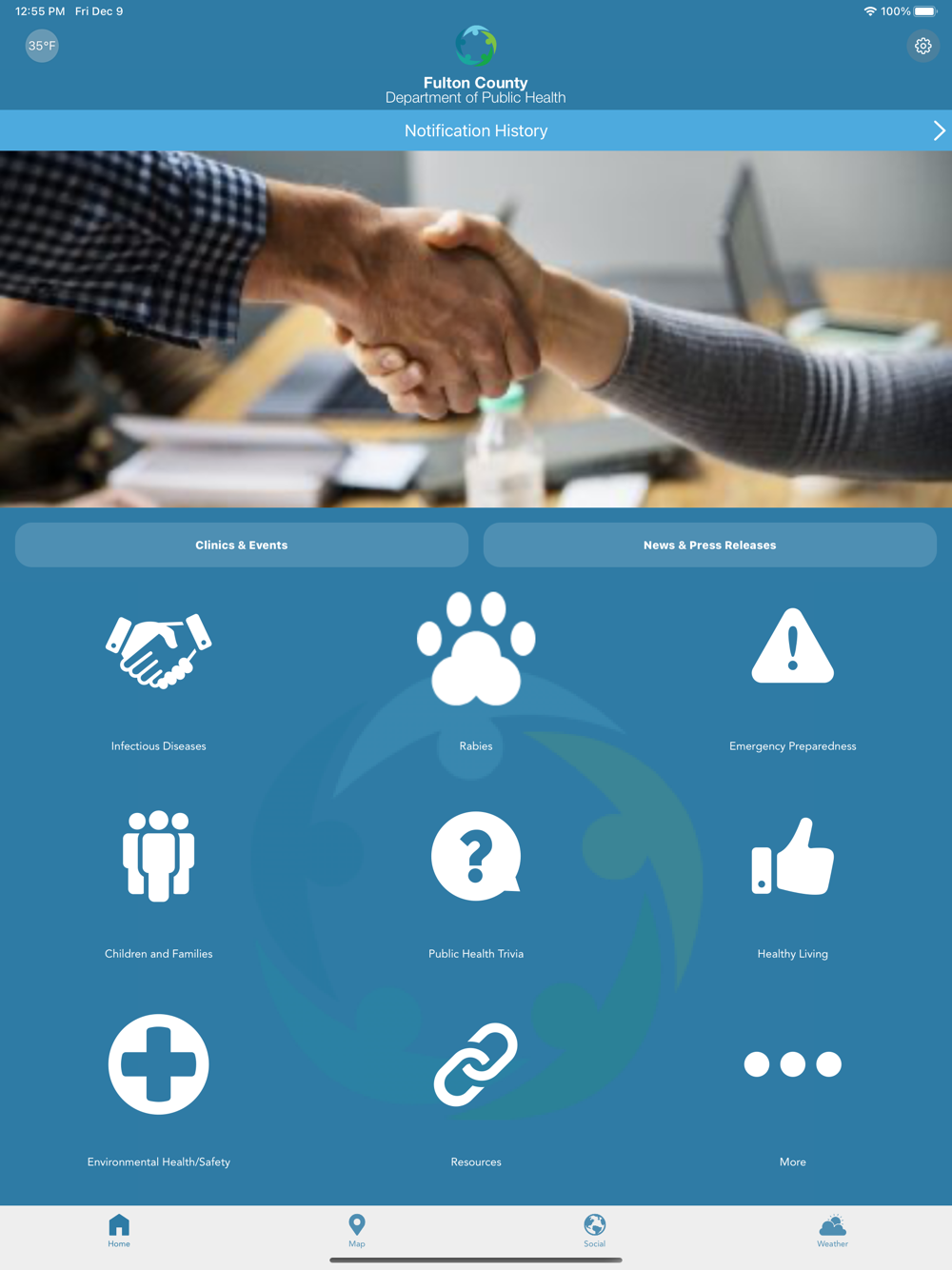 Fulton County Department of Health, download this app for quick access and up to date information about the County’s Department of Health. Access to information on Rabies, Emergency Preparedness, Lead, Children and Families, Immunizations, Healthy Living, county health services and programs along with access to social media.