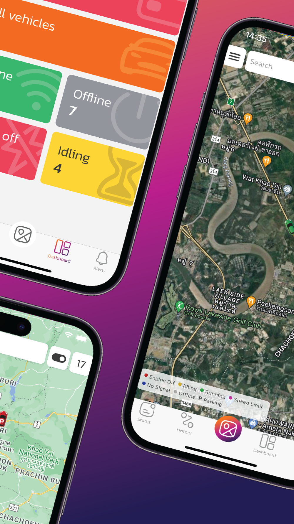รู้ตำแหน่งรถแบบเรียลไทม์จาก GPS Tracking พร้อมบอกสถานะของรถ เช่น จอด เดินเบา วิ่ง ความเร็วเกินกำหนด