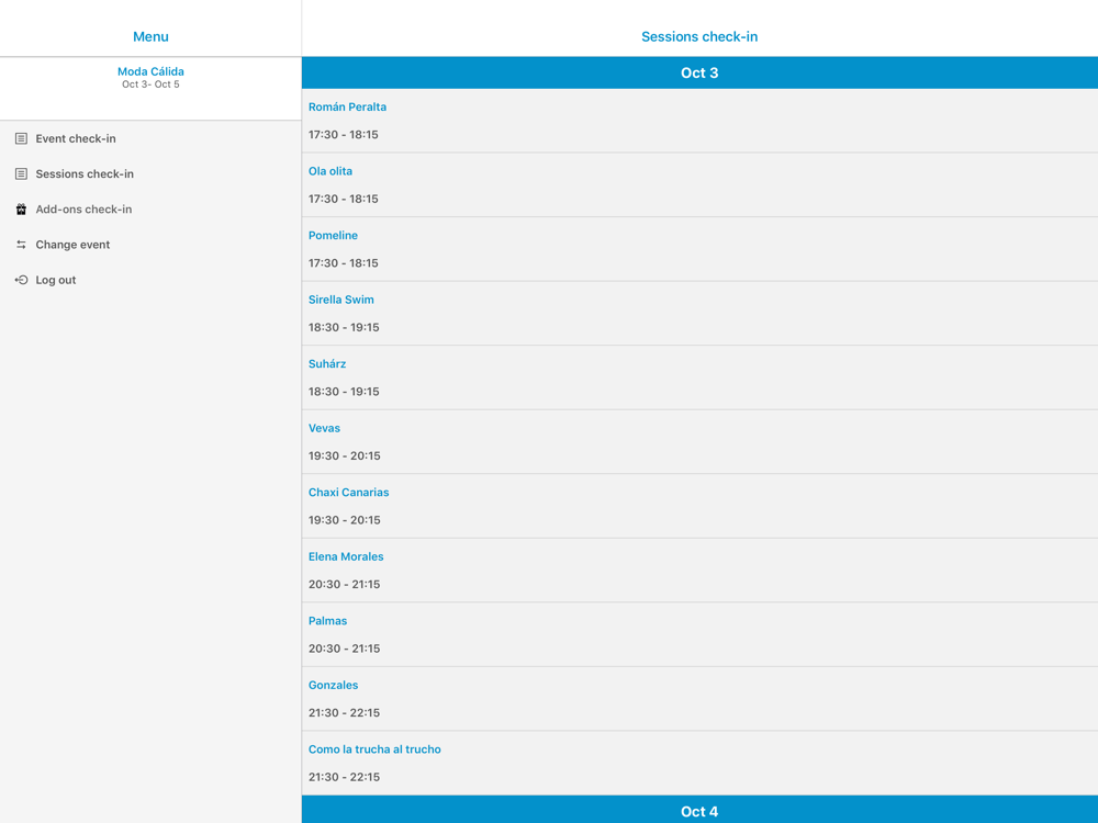 A través de esta aplicación de check-in, los organizadores pueden acceder fácilmente a eventos activos y obtener los detalles de los asistentes para una entrada más rápida. La aplicación lee los códigos QR y los códigos de barras que se encuentran en cada ticket de asistente registrado.
