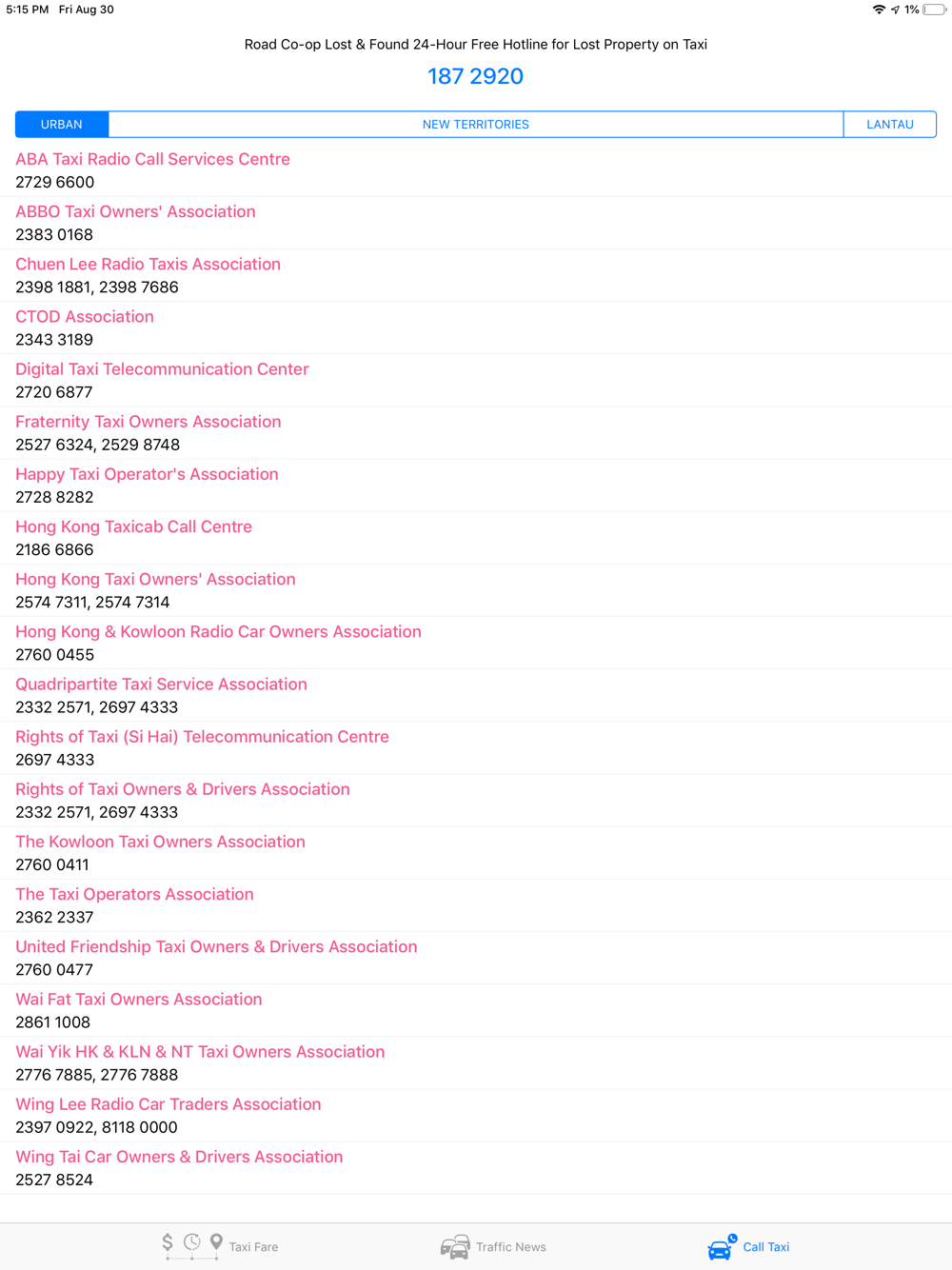 7. Popular taxi phone numbers in Hong Kong include Hotline for Lost Property on Taxi.