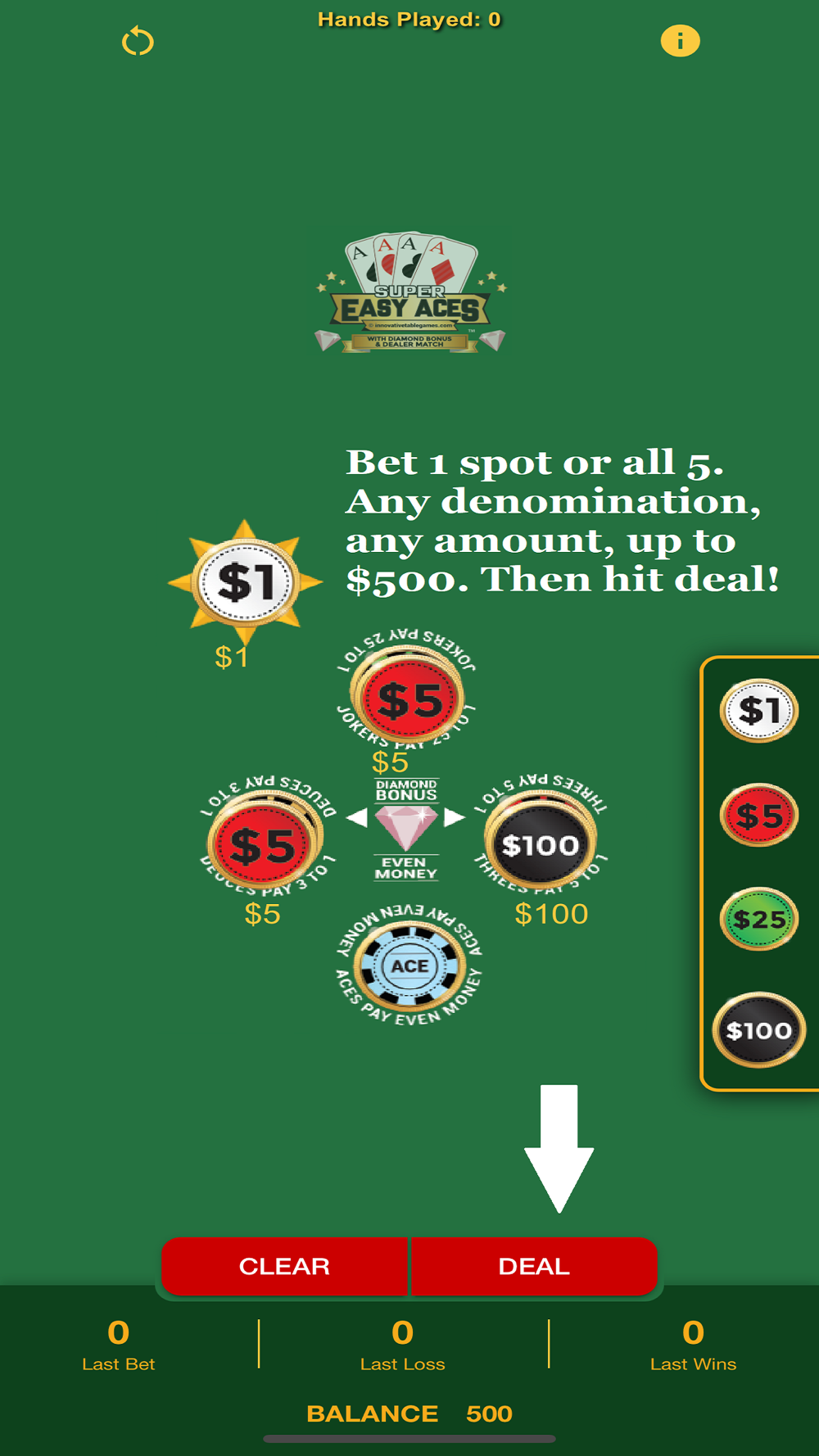 Super Easy Aces is intended for an adult audience of 21 years and up. Super Easy Aces does not offer real money gambling nor any opportunity to win real money or prizes. This game is strictly for your entertainment. Practice or success at social gaming does not imply future success at real money gambling. This game is free to play, but that policy may change sometime in the future.
