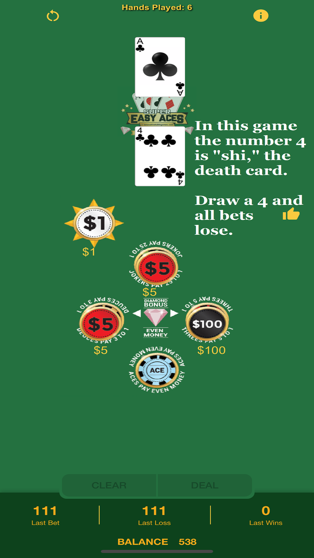 Super Easy Aces is a brand new one card guessing game unlike anything you have ever played!