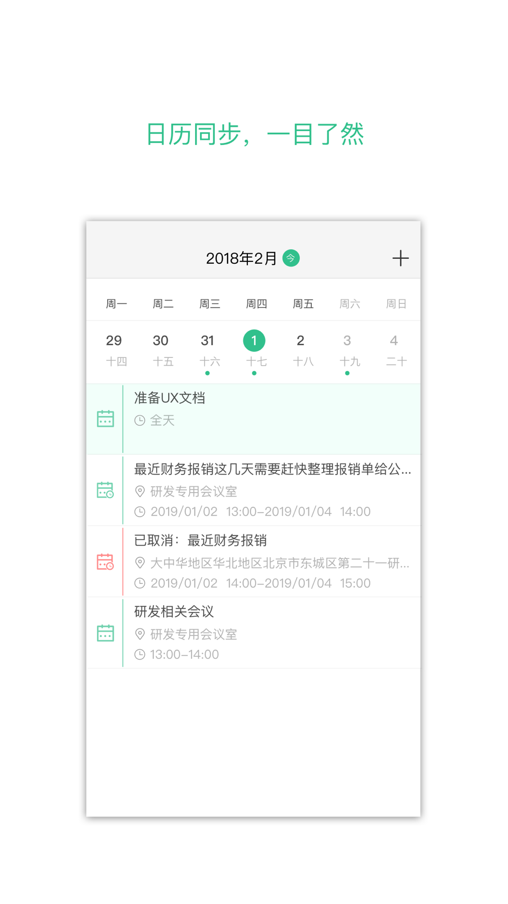 - 同步Exchange协议下的日历项,支持日历邮件操作及回复,支持发起会议/约会项