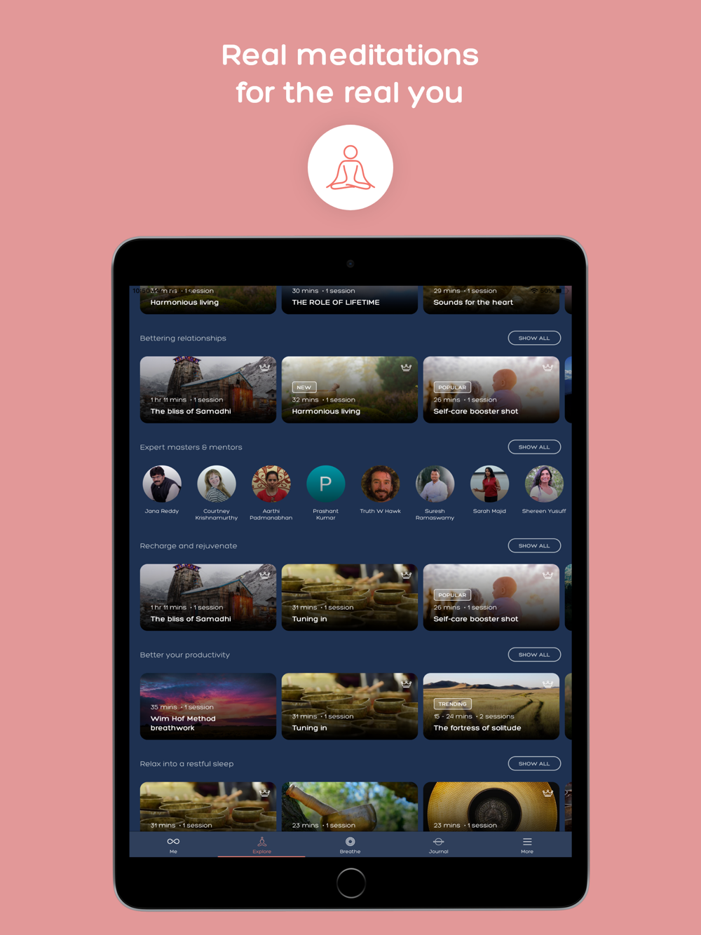 Over time, AUMHUM helps you build your meditation and self-care practice routine. The practice tools include - timers, feedback & ongoing review by masters. You also get inspirational daily quotes from the masters.