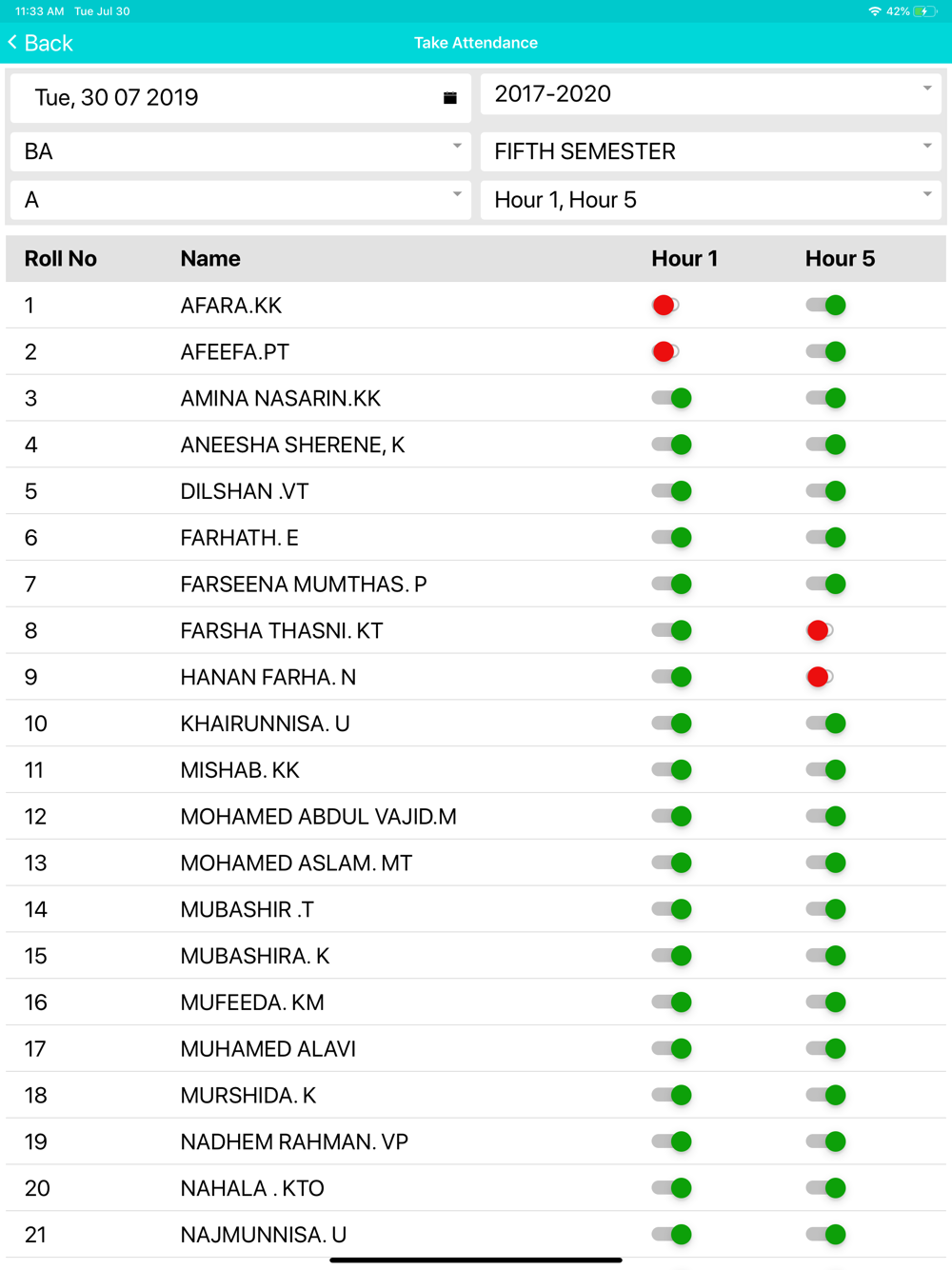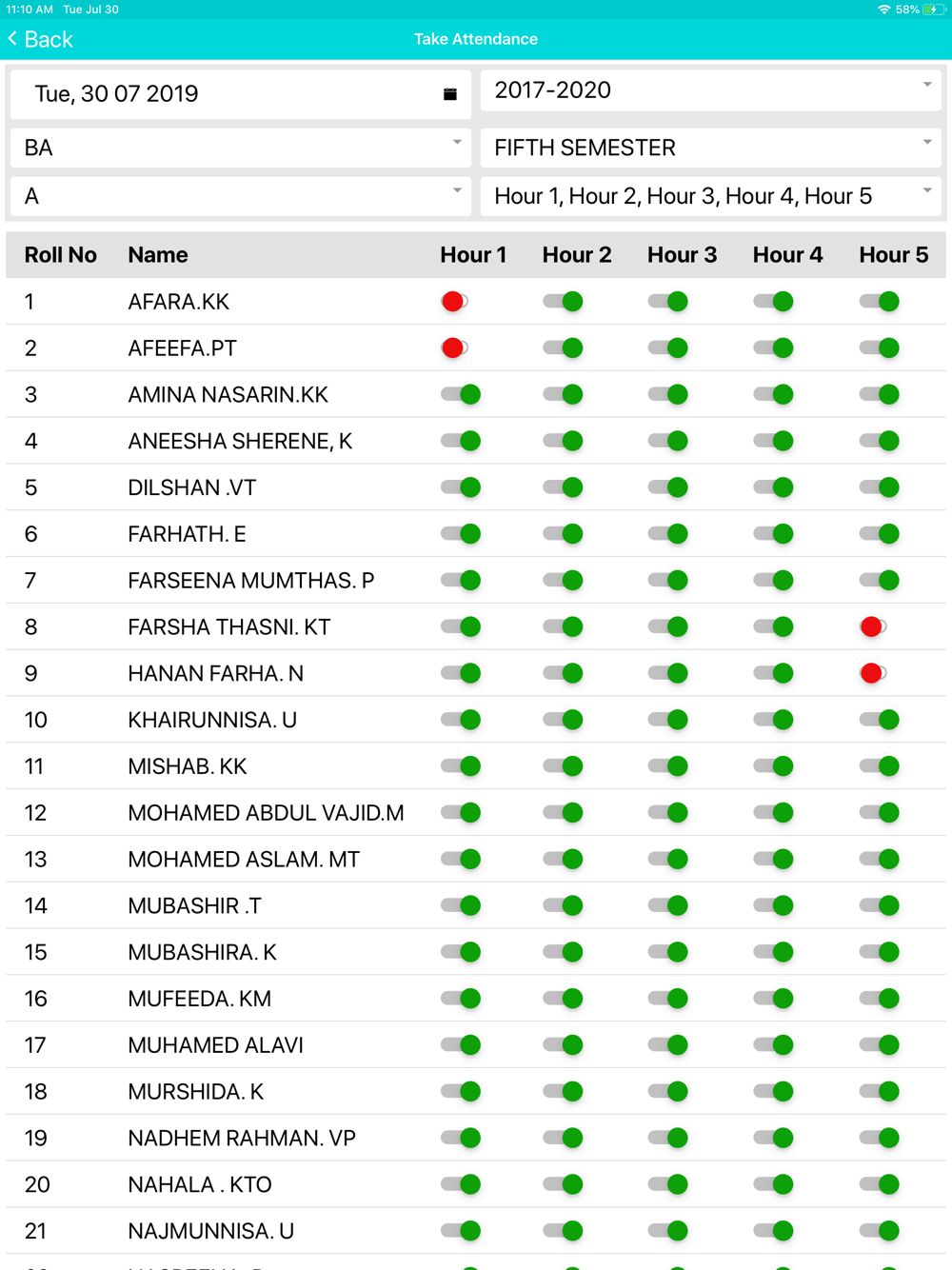 College Attendance App is easy for the teaching staff to take attendance directly from the classroom through their mobile device.