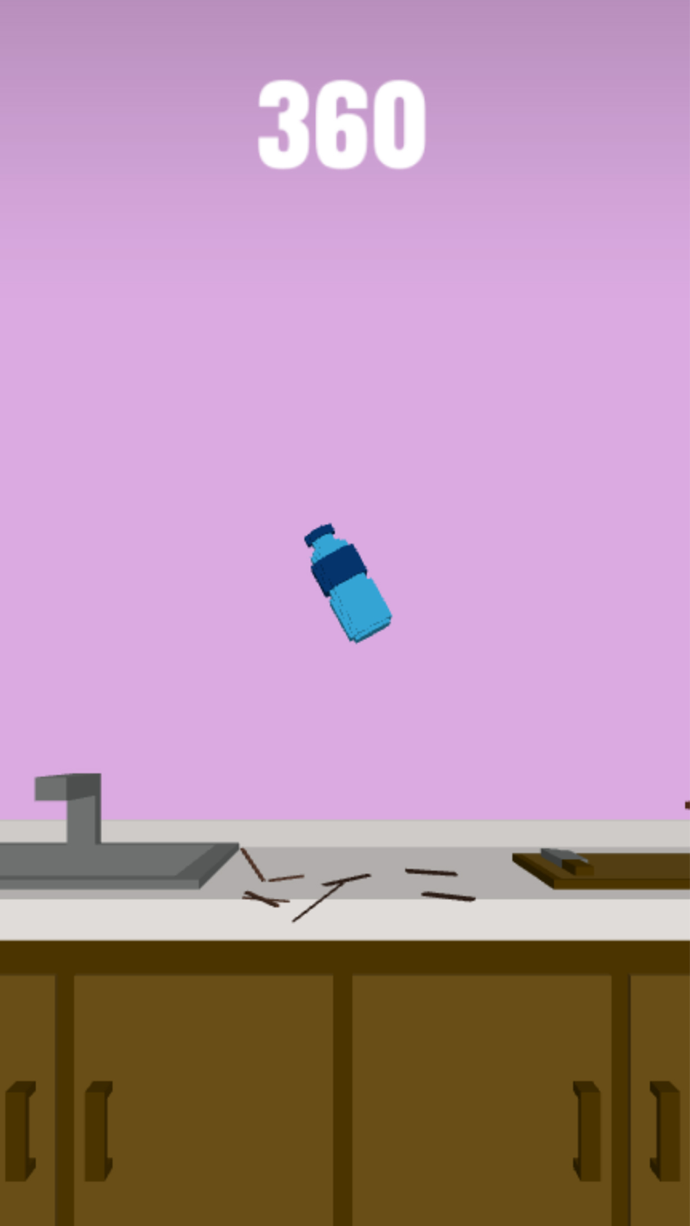 You have to flip a plastic bottle in the exciting arcade game Bottle Flipper 3D! Make the bottle down the shelves. How? Just tap the screen at the right moment and jump!