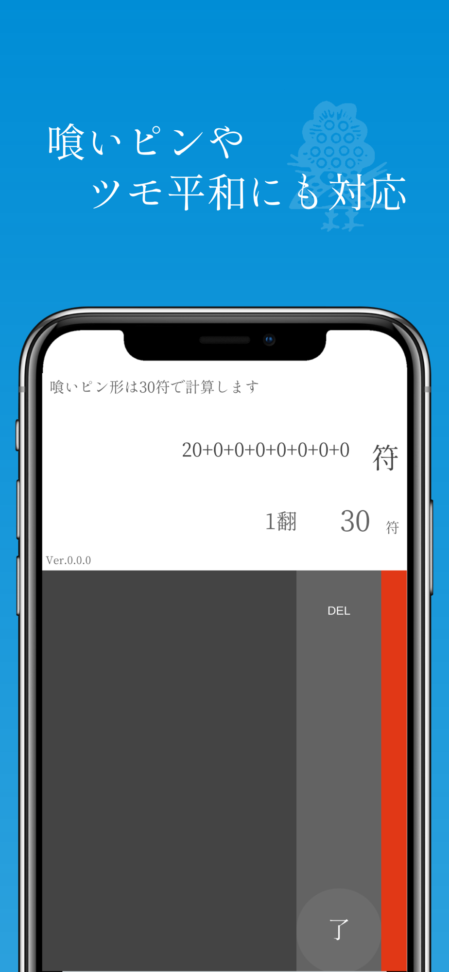 最短3タップでアガリ点数を計算できるシンプルな麻雀用電卓です。