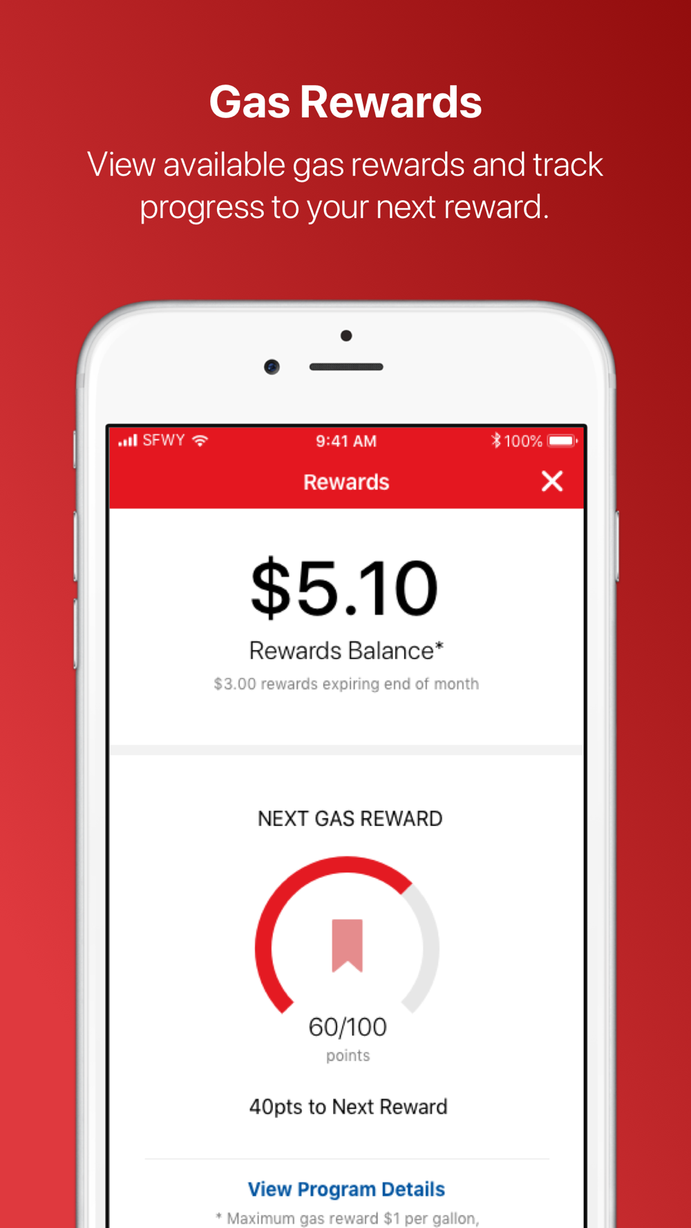 Redeem gas rewards instantly through the app. Track progress to your next reward so that you're always up to date on savings.