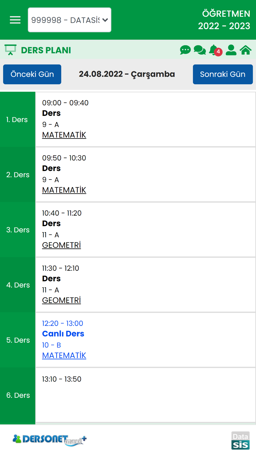 HAFTALIK PLAN VE YOKLAMA - Öğretmene atanan derslerin günlük olarak listelendiği ve günlük yoklama işlemini yapabildiği bölümdür.