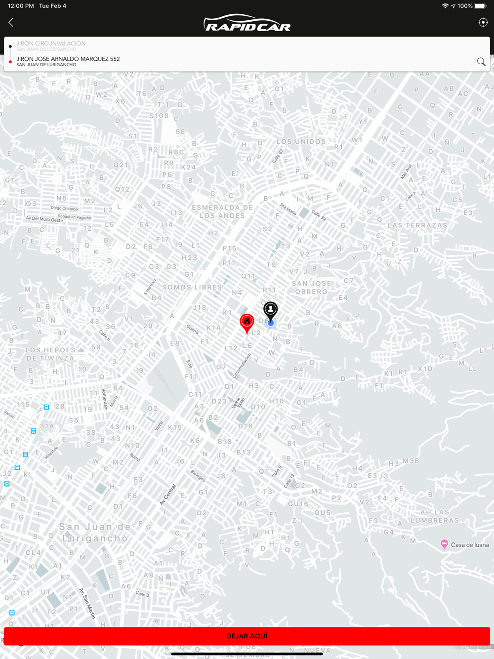 Tu ubicación sera localizada automáticamente y luego podrás solicitar al conductor mas cercano o realizar una reserva.